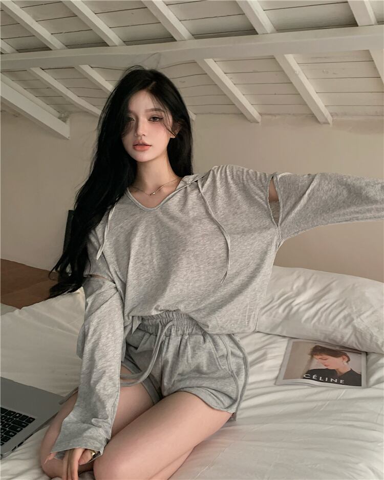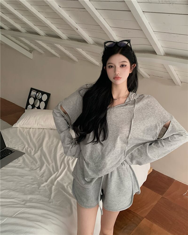 Grey hollow sunscreen long-sleeved T-shirt women's spring 2022 new loose mid-length design hooded top trendy ロング スプリング 春物 Tシャツ 0921998002036106