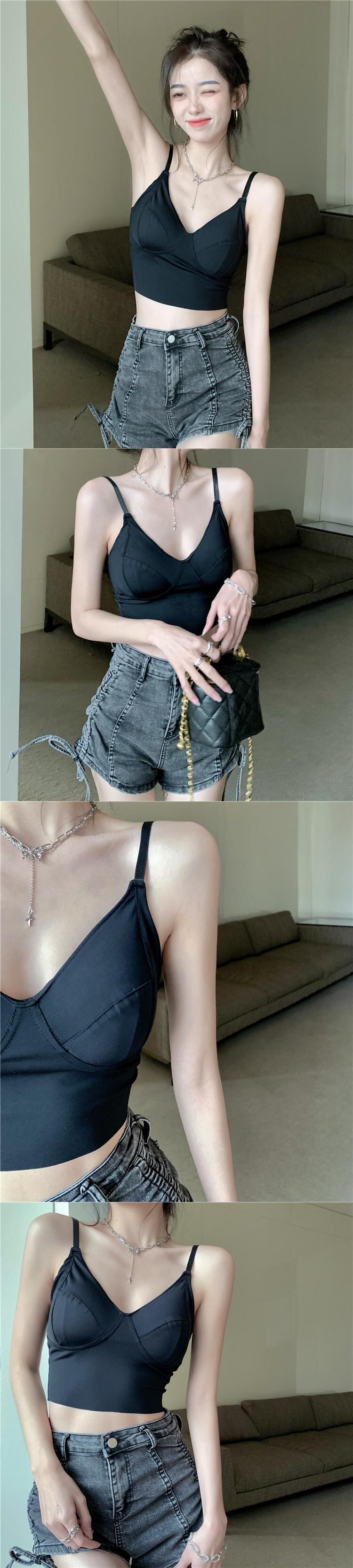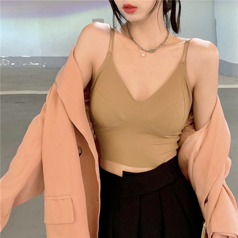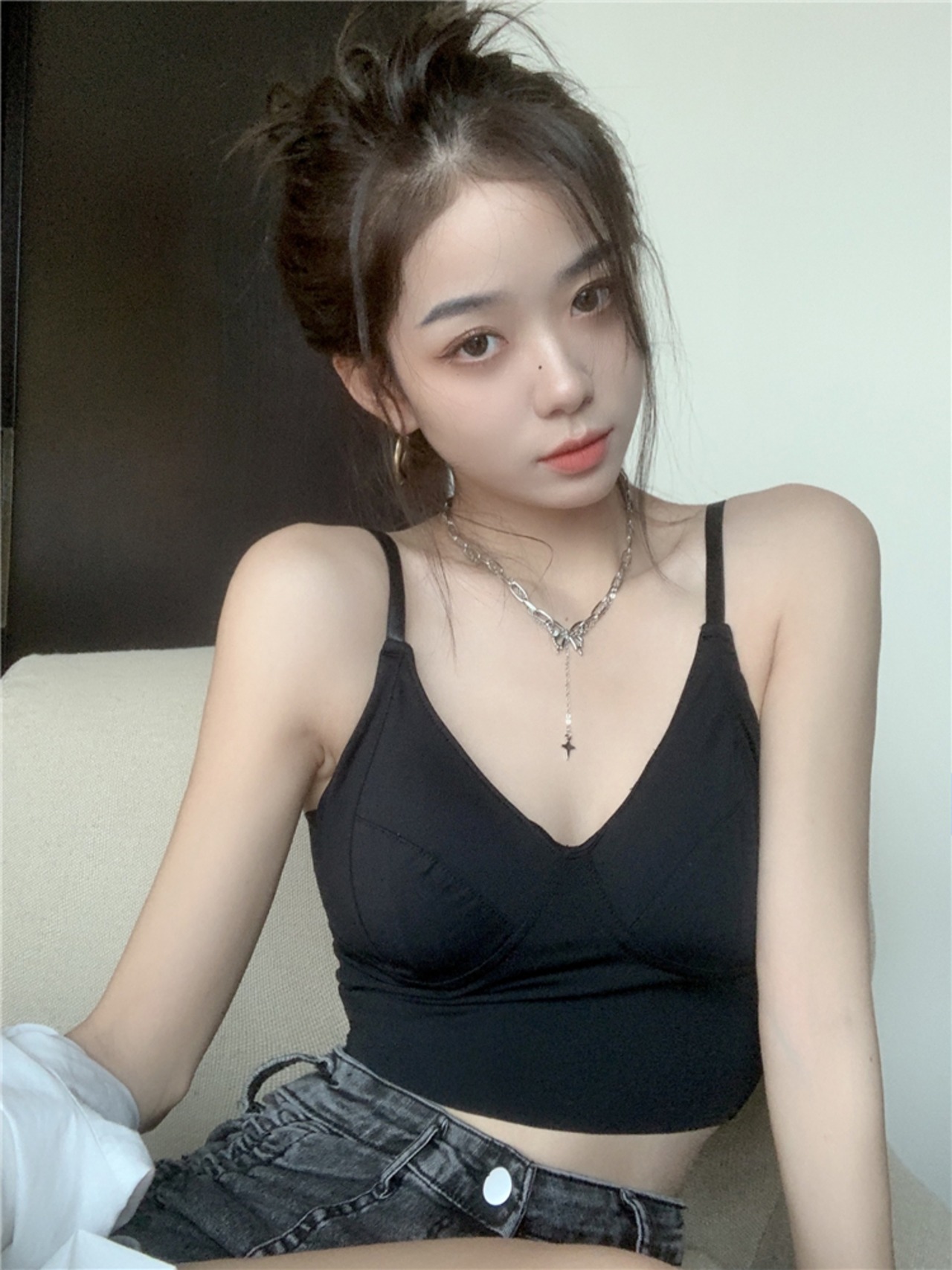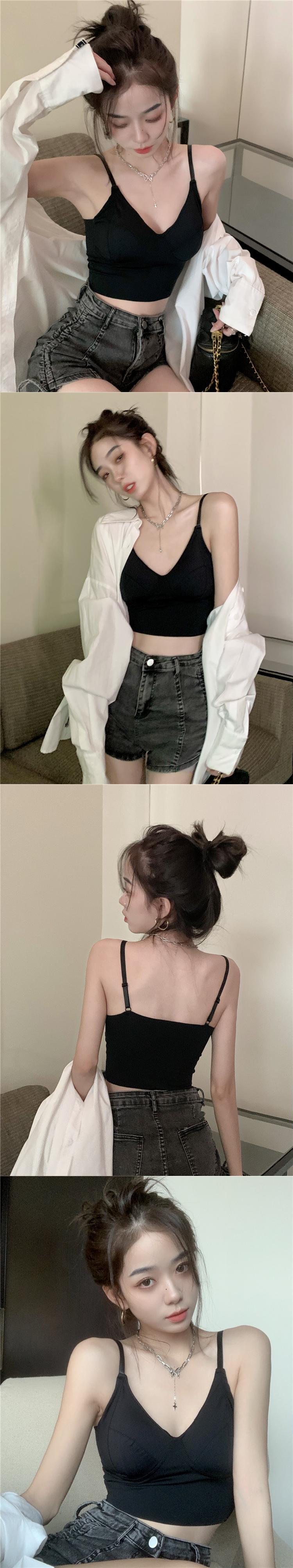 Sexy V-neck camisole women's inner wear summer 2022 new slim beauty strap chest pad bottoming short top ショート サマー 夏物 Vネック スリム 09219935854438