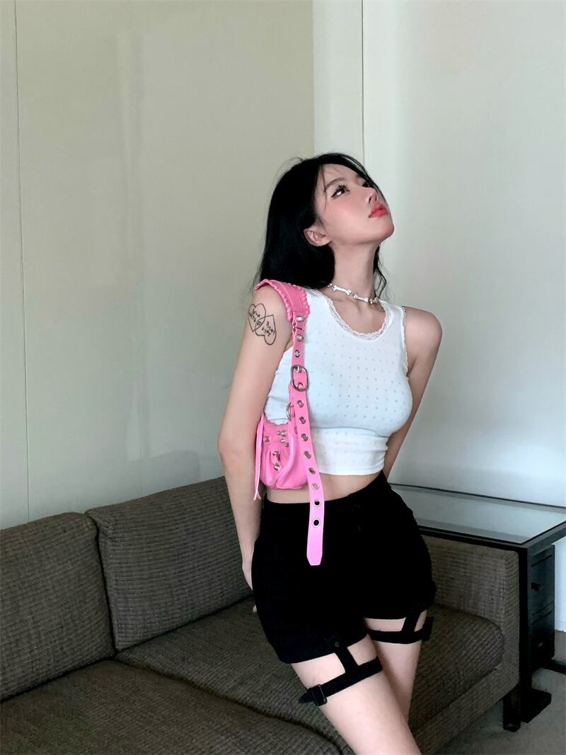 Hot design sense hollow lace-up denim shorts women's summer 2022 new self-cultivation high waist black straight pants ハイウェスト ブラック レース サマー 夏物 ショーツ ブルマー レースアップ 0921939667206905