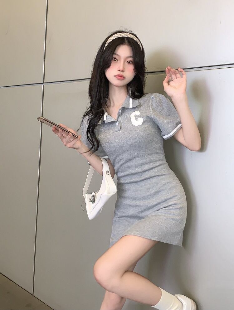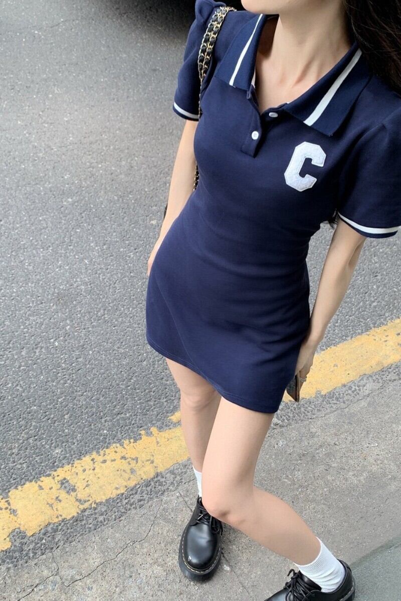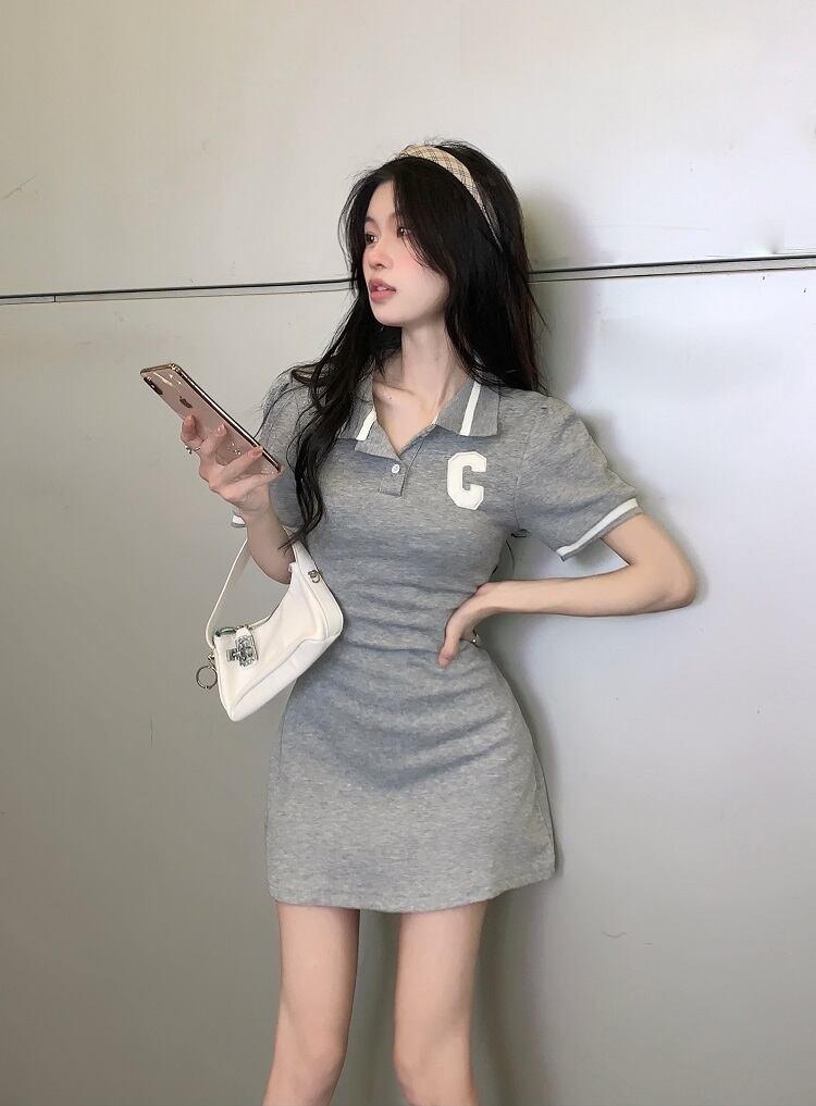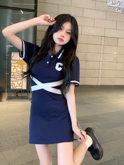 Pure lust style temperament hit color polo collar short-sleeved dress women's summer 2022 new small waist bag hip skirt サマー 夏物 スカート 092195052840756