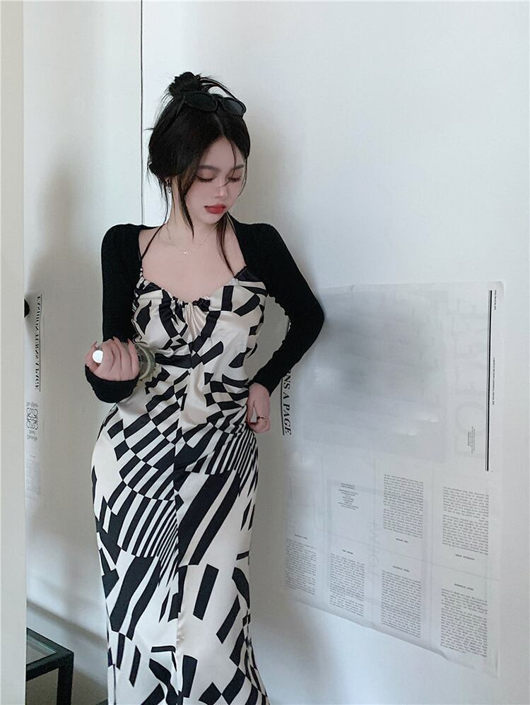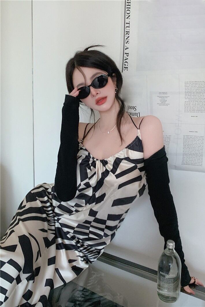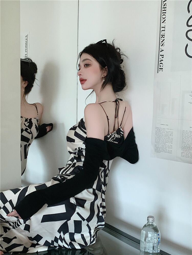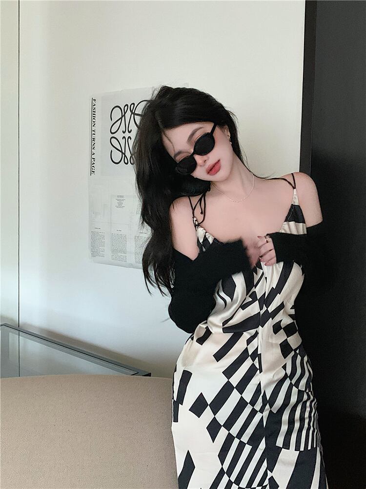 Sexy V-neck halterneck suspender dress women's summer 2022 new design sense of small hit color waist skirt trendy サマー 夏物 スカート Vネック 0921936002595826