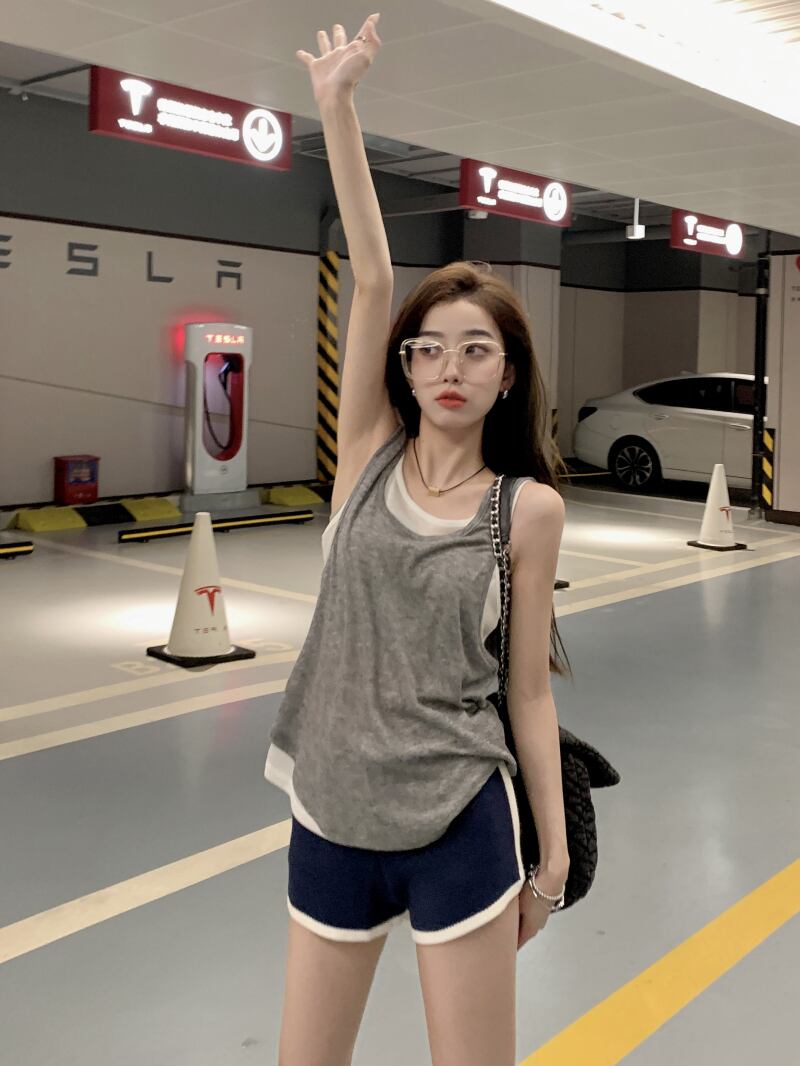 色:Faketwo-piecevest,ブルーCasualホットパンツ