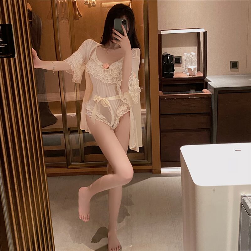 Sexy lace suspenders pajamas women's summer two-piece set 2022 new three-dimensional flower one-piece home clothes suit レース サマー 夏物 フラワーデザイン 0921943171538410