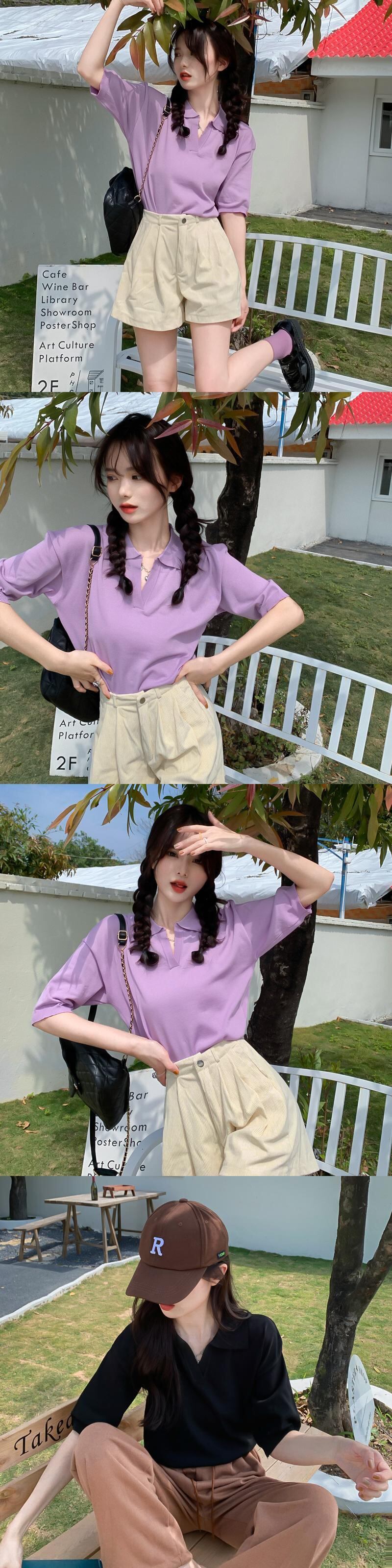 Purple knitted short-sleeved t-shirt women's ins trendy summer 2022 new version design sense all-match loose and thin top サマー 夏物 Tシャツ パープル 0921970684448442