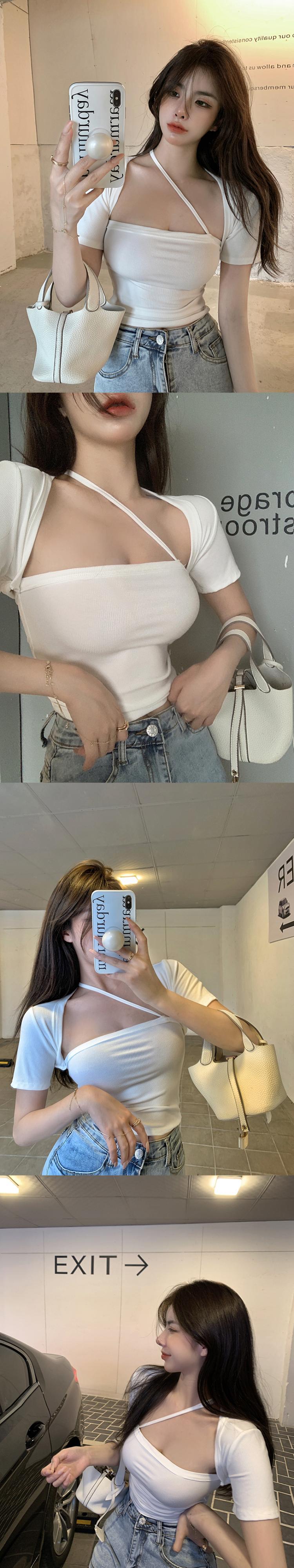 Sexy square collar fake two white short-sleeved T-shirt women's summer 2022 new slim fit and thin short top ショート ホワイト サマー 夏物 スリム Tシャツ スクウェア 0921913408050321