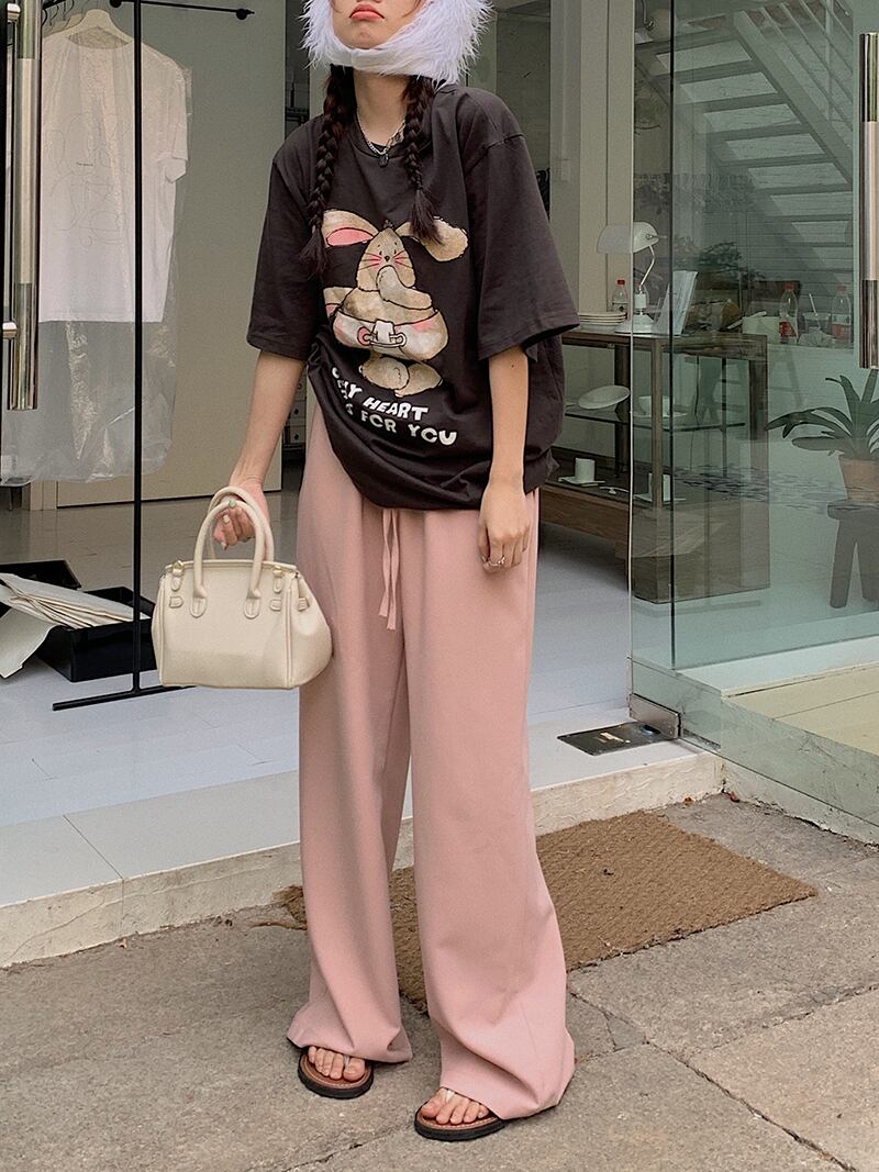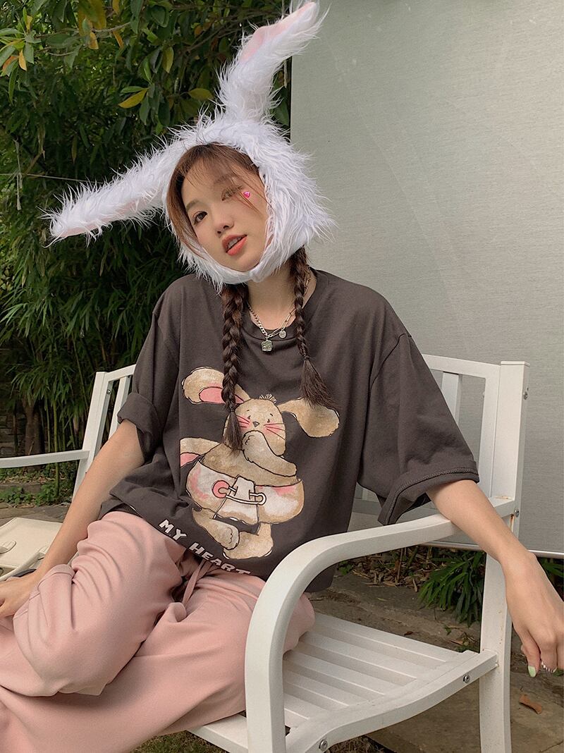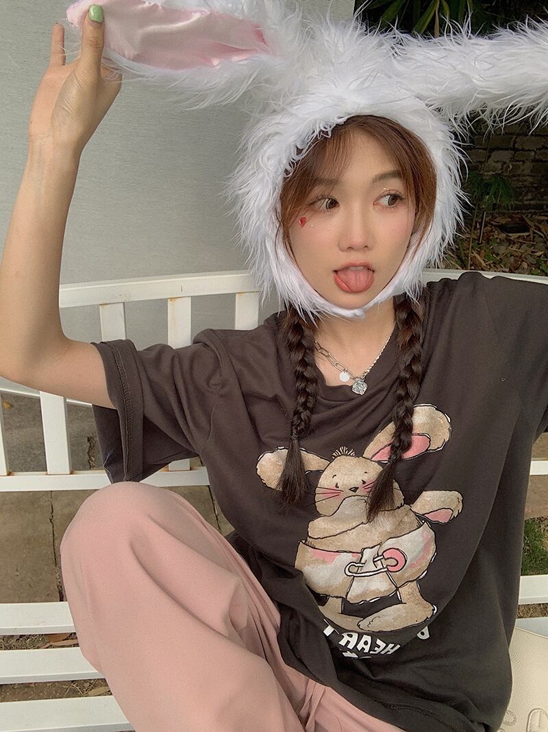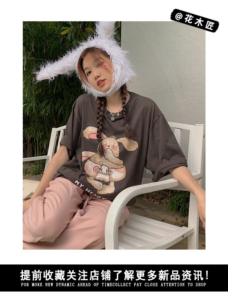 Cartoon rabbit print loose t-shirt women's summer 2022 new version all-match loose mid-length half-sleeve top サマー 夏物 Tシャツ 0921916894545958