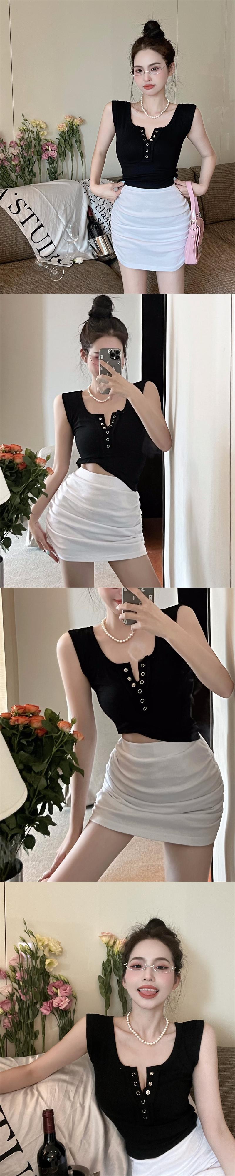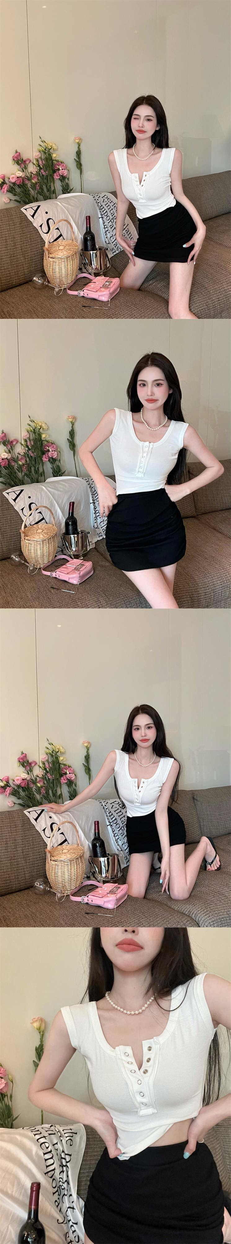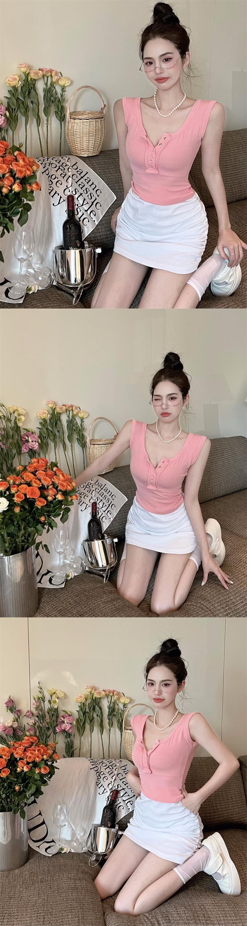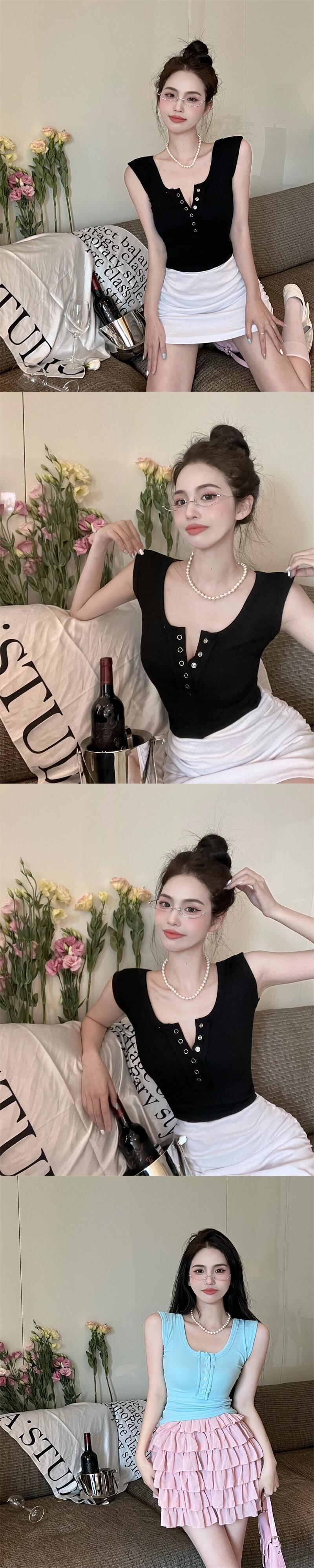Hot design sense blue vest women's inner wear summer 2022 new eign style slim short sleeveless top outer wear ショート ブルー 半袖 ハーフスリーブ サマー 夏物 ノースリーブ スリム 0921945912861754
