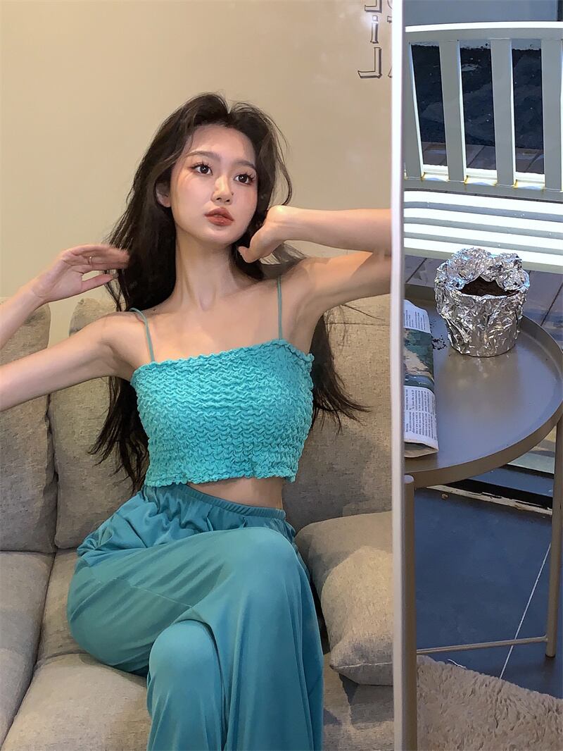 Pure lust and sweet one-shoulder camisole women's outer wear summer 2022 new small slim fit inner top 大人ガーリー スウィート キュート カジュアル サマー 夏物 スリム 0921984266402282
