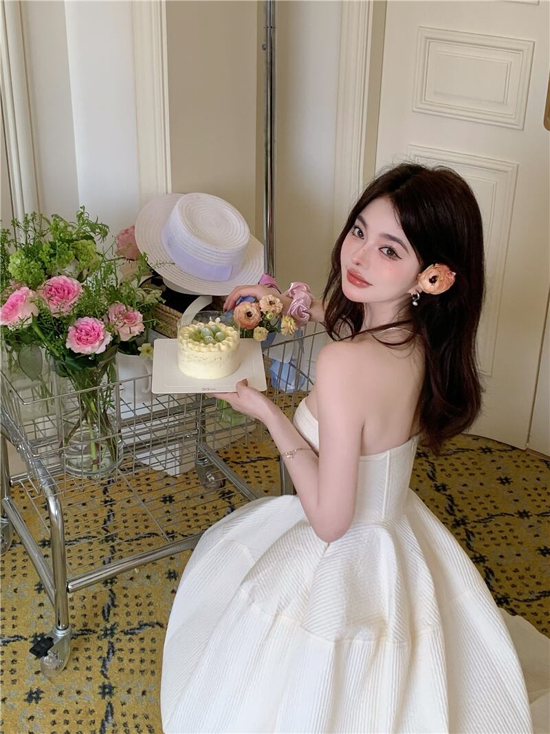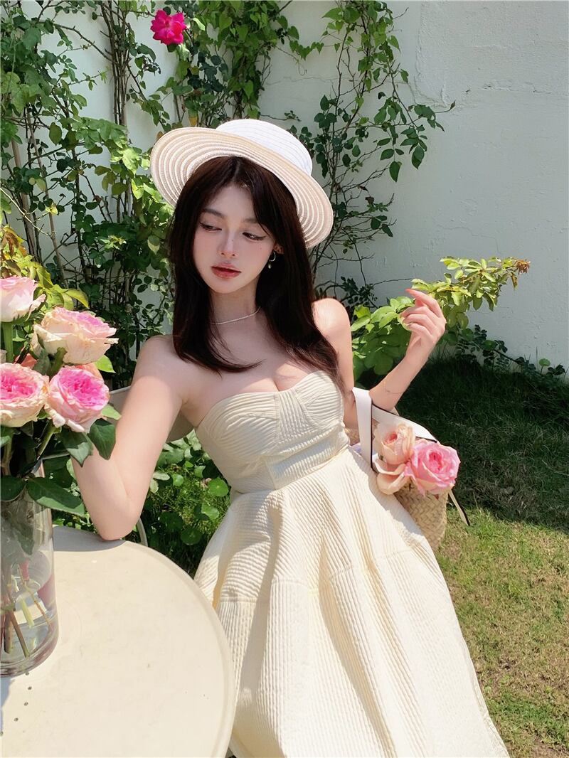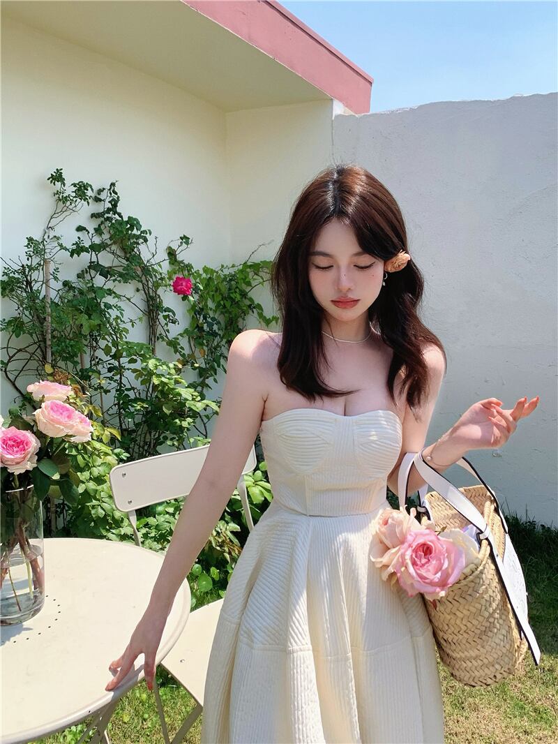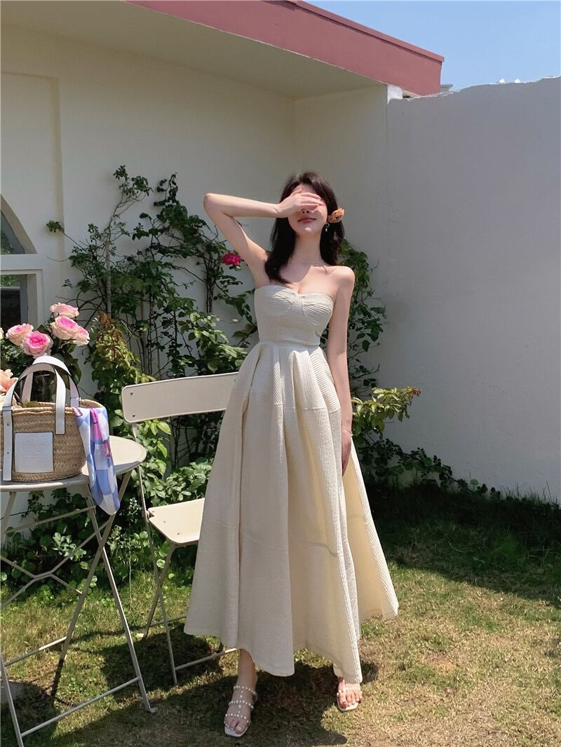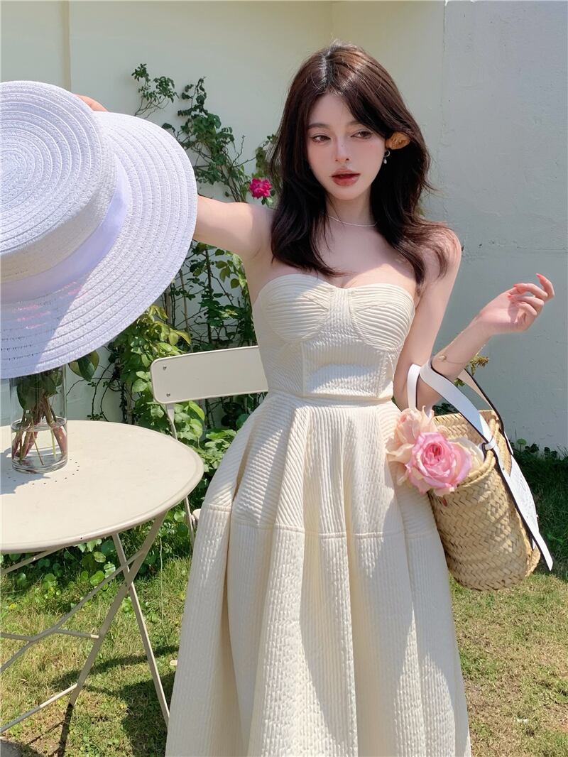 Gentle style one-shoulder tube top dress women's summer 2022 new French mid-length waist A-line skirt サマー 夏物 スカート Aライン 0921970543575251