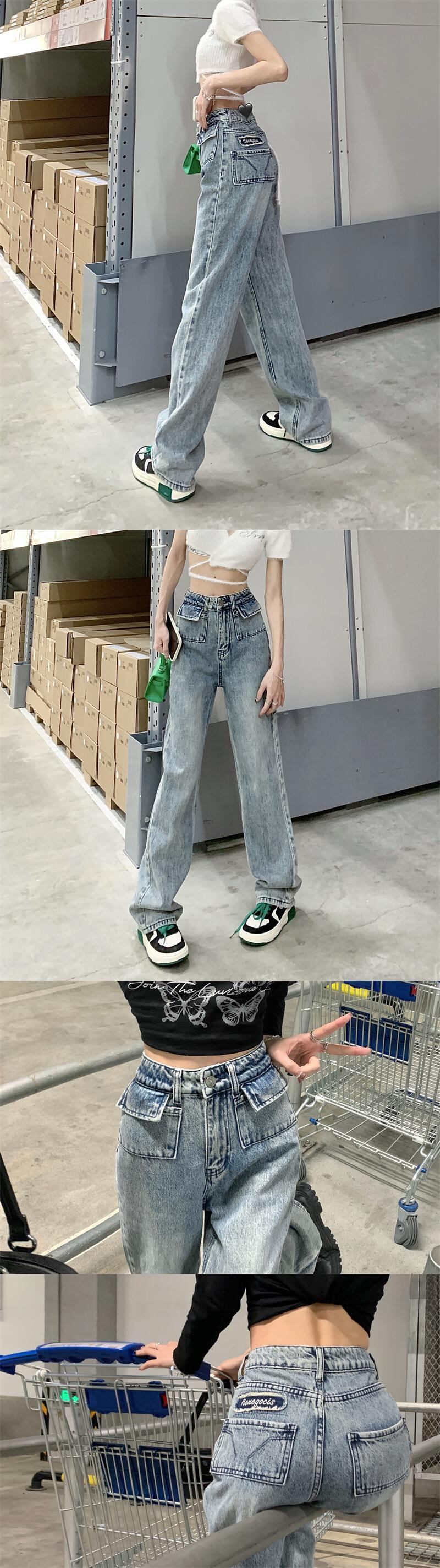sense heavy industry fashion high waist jeans women loose and thin summer 2022 new fried street wide leg pants ハイウェスト ストリート サマー 夏物 ワイドレッグ ワイドパンツ 0921983279973100