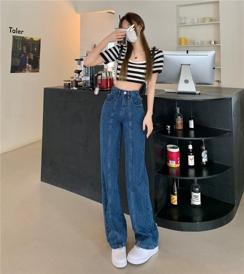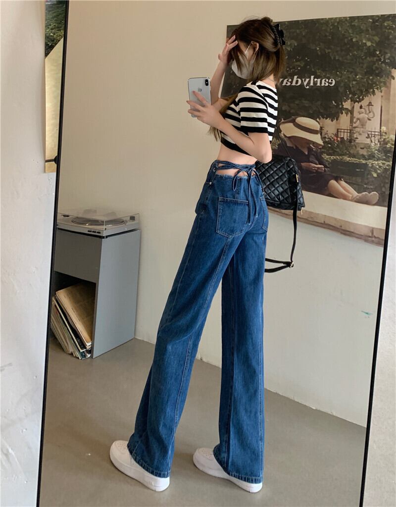Dark blue lace-up high-waisted jeans women's summer 2022 new net red high-waisted slim straight loose wide-leg pants レッド ブルー レース サマー 夏物 スリム レースアップ 0921981730279711