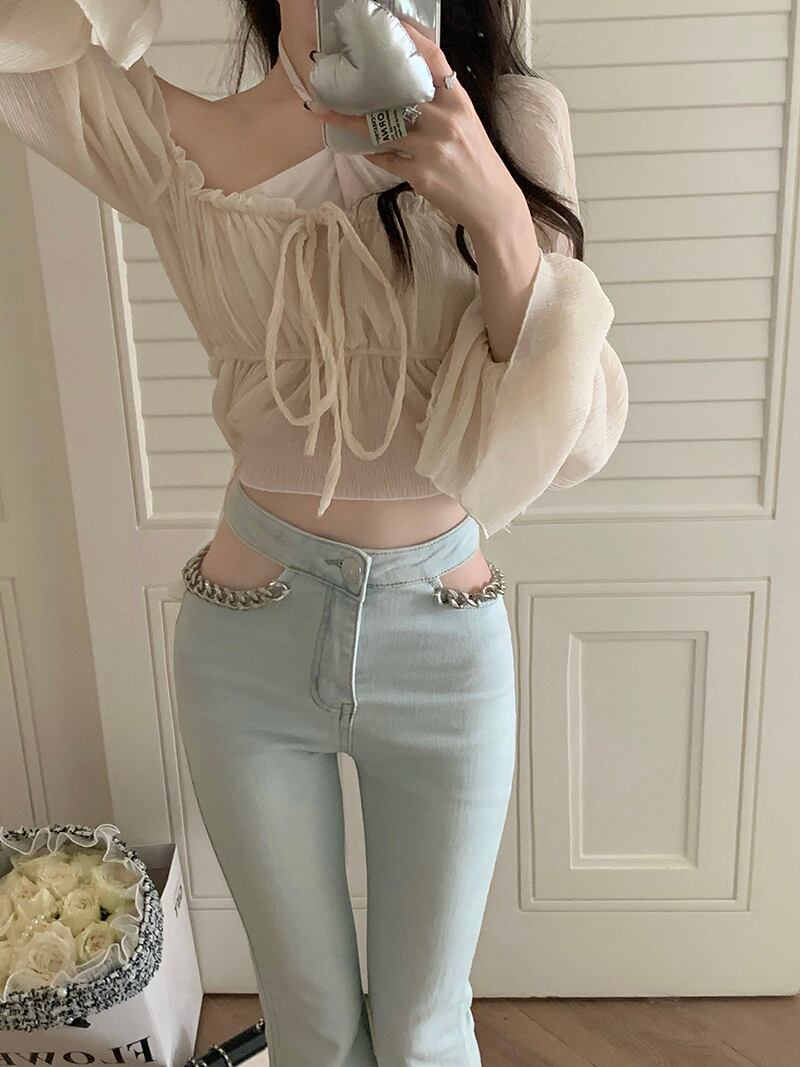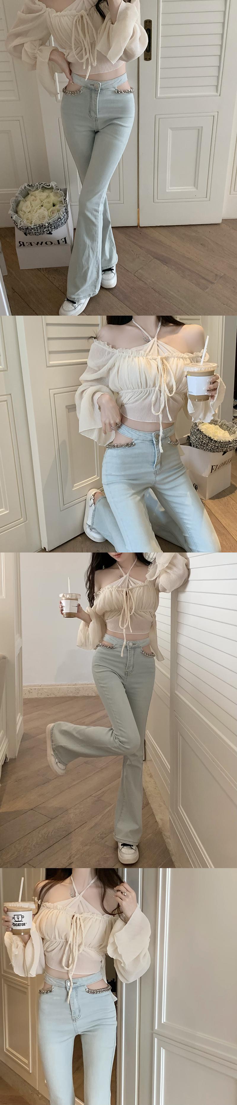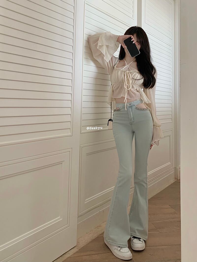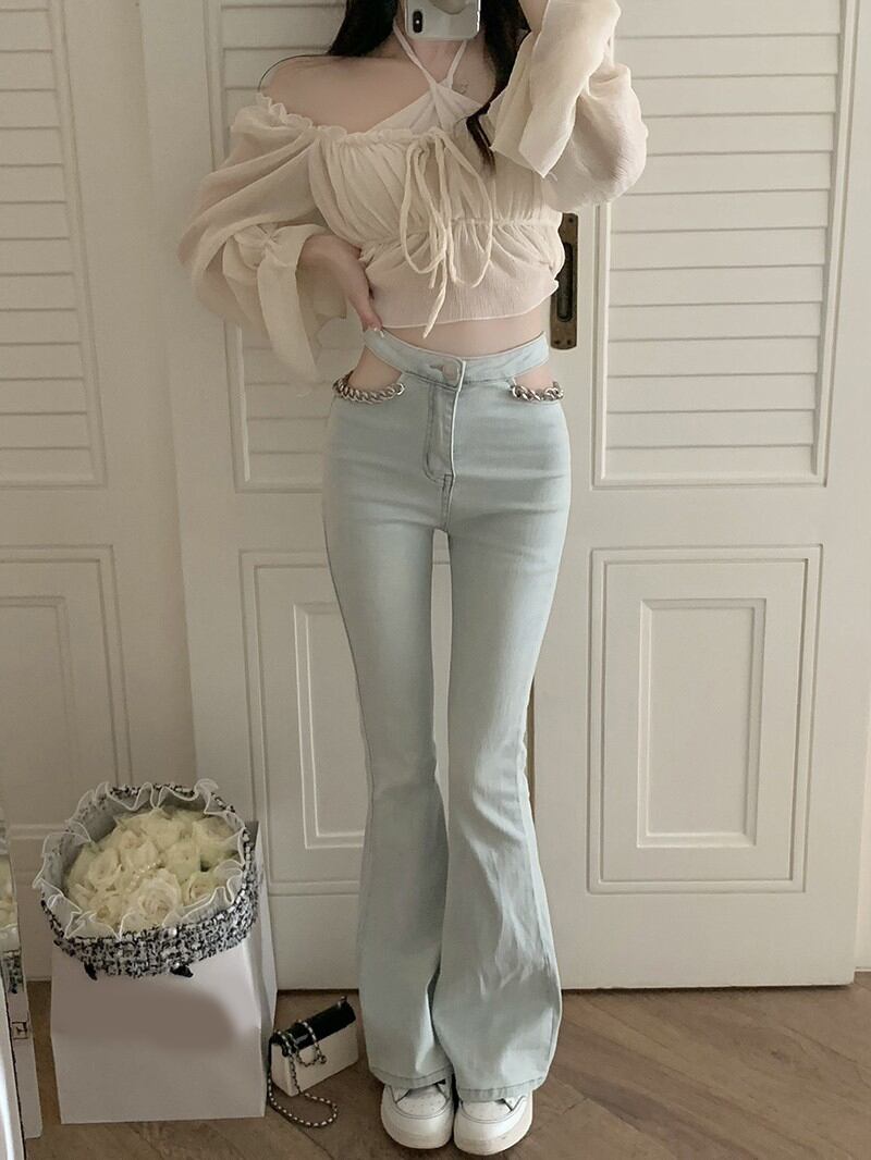 sense niche hollow blue high-waisted jeans women's summer 2022 new fashion slimming micro-flare pants ブルー サマー 夏物 092198619623847