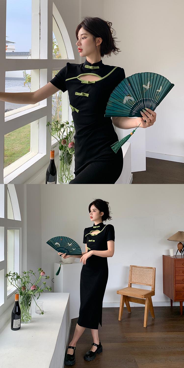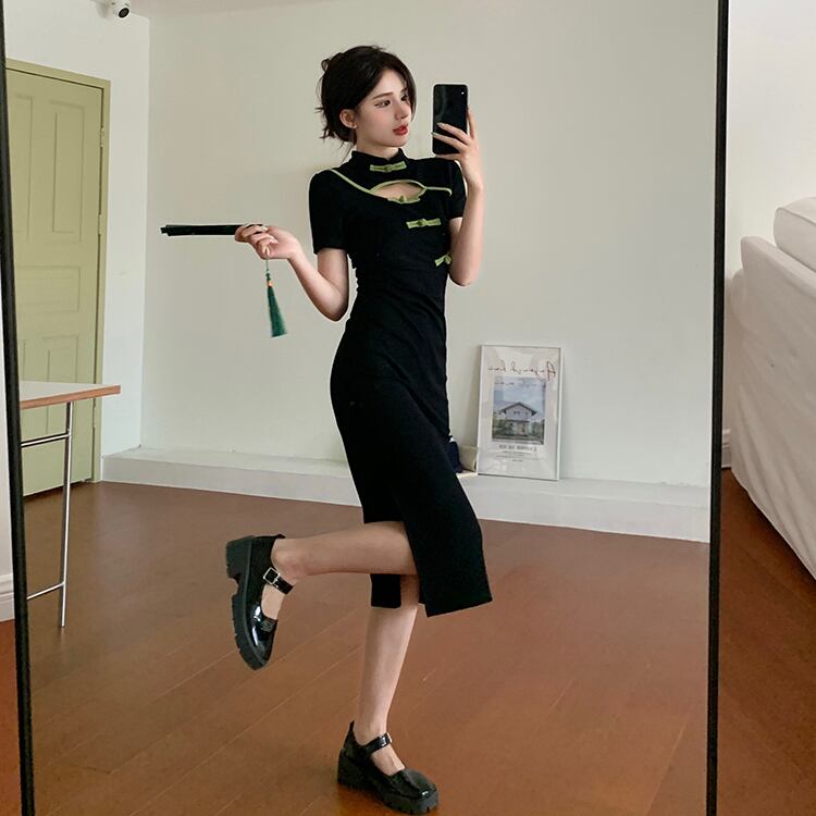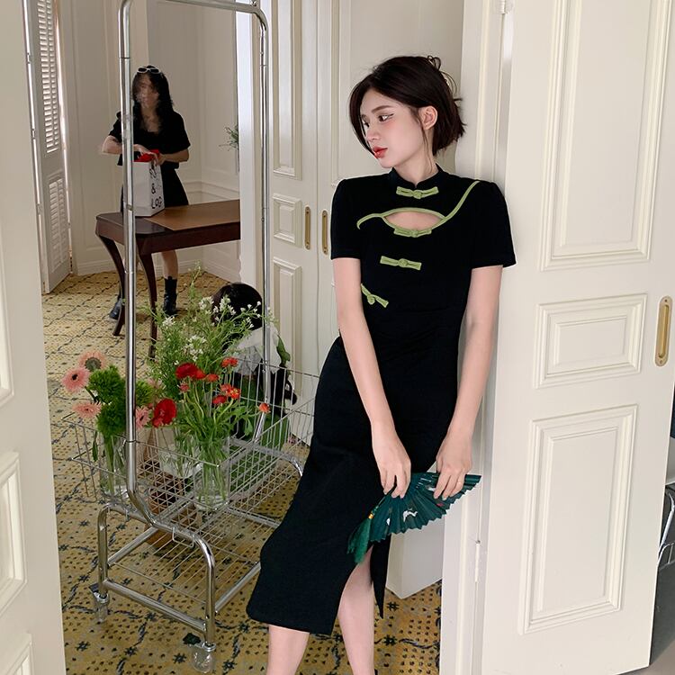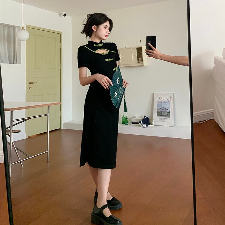 sense hollowed-out improved cheongsam dress women's summer 2022 new retro waist slimming mid-length skirt レトロ サマー 夏物 スカート 0921927093998270