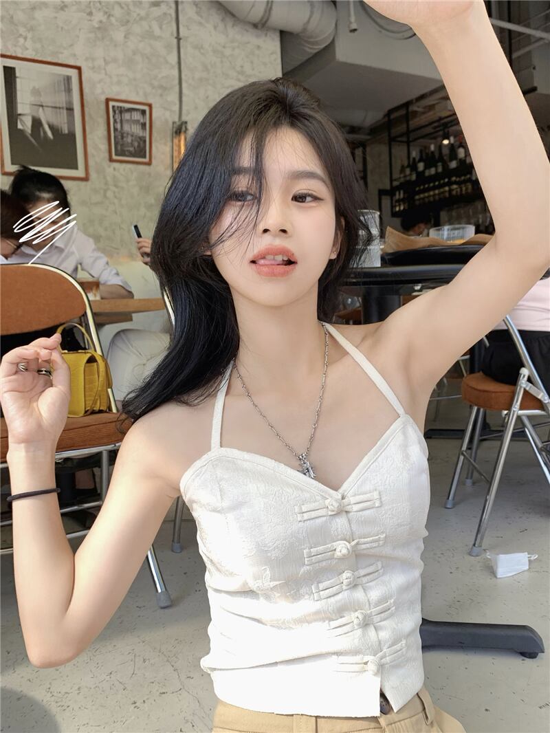Chinese style white halter neck camisole women's outer wear summer 2022 new net red style slim short top ショート ホワイト レッド サマー 夏物 スリム 0921995473119937
