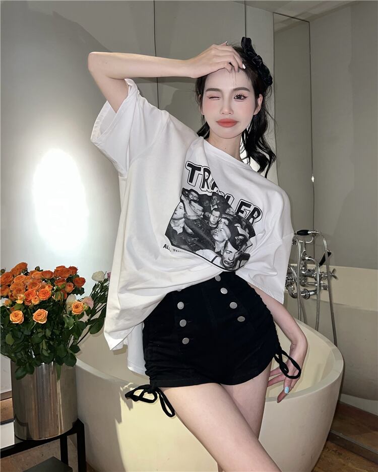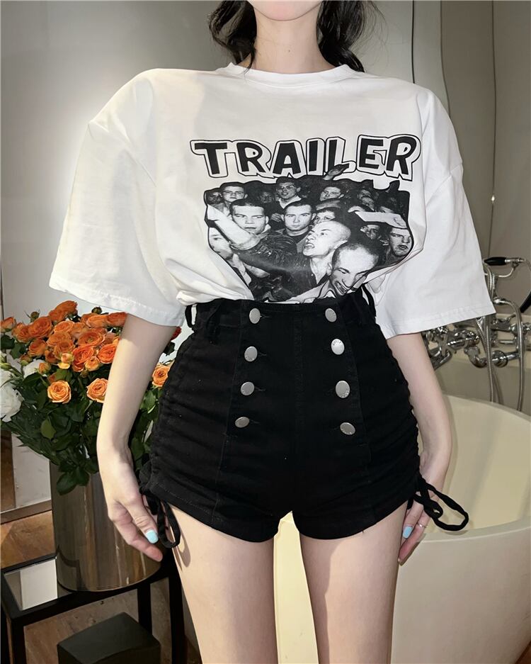Hot Girl Double Breasted Drawstring Denim Shorts Women's Summer 2022 Waist Thin Black Slim Fit Straight Pants ブラック サマー 夏物 ショーツ ブルマー スリム 0921975004111481
