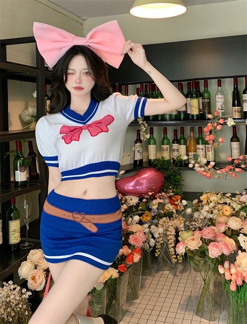 Hot hit color bow V-neck short-sleeved T-shirt women's summer 2022 new small temperament short knitted top ショート リボン サマー 夏物 Vネック Tシャツ 09219572779459