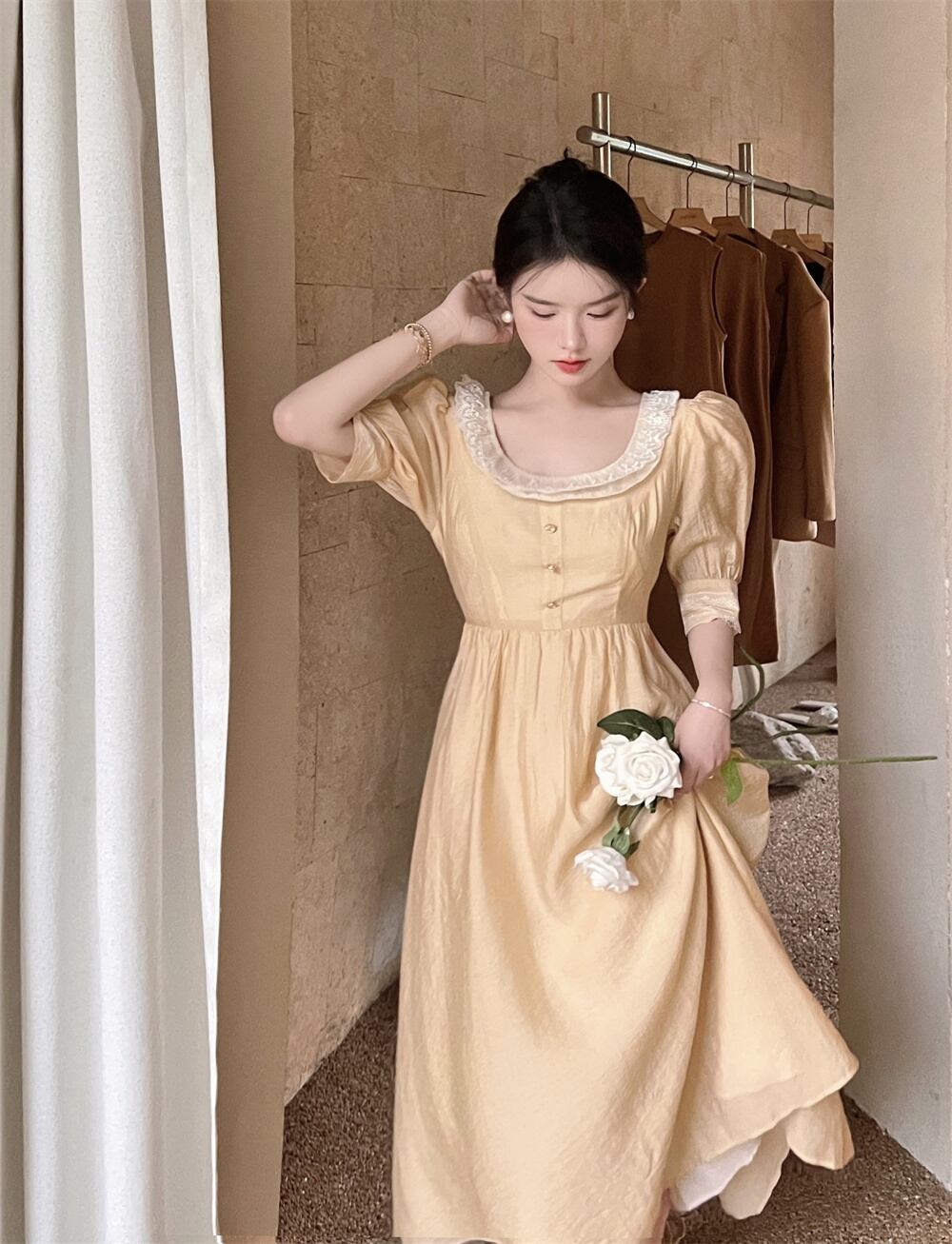 French first love gentle wind dress women's summer 2022 new stitching lace waist mid-length a-line skirt レース サマー 夏物 スカート Aライン ステッチ 0921948403131029