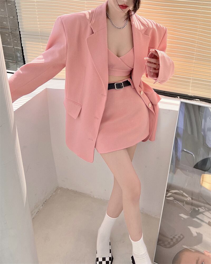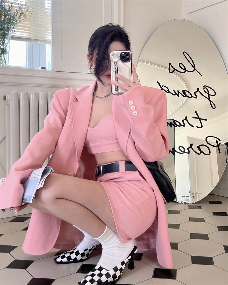 -quality fried street pink suit jacket women's spring 2022 new version of the loose mid-length suit jacket trend ピンク ストリート スプリング 春物 0921946518927093