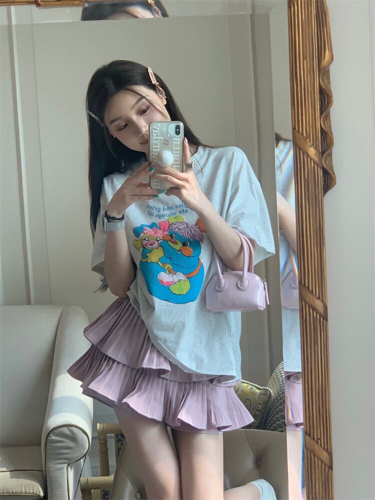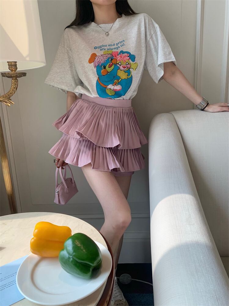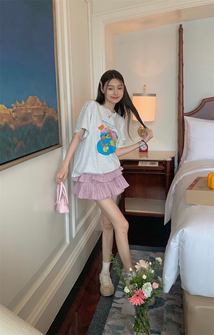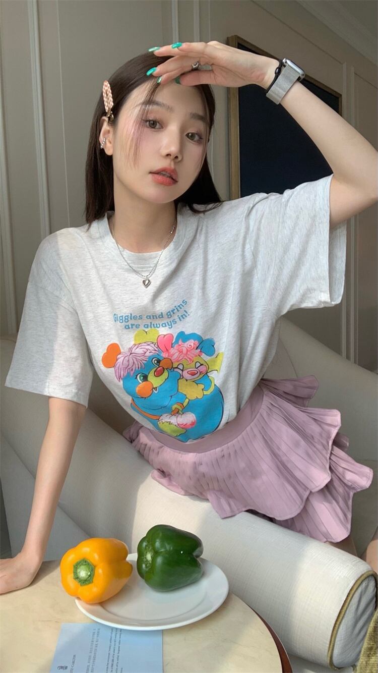 色:ワン-pieceグレーT-shirt,ピンクスカートワンPiece