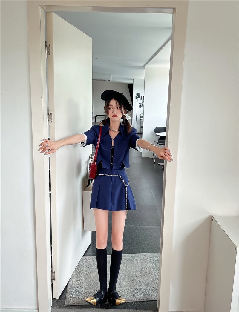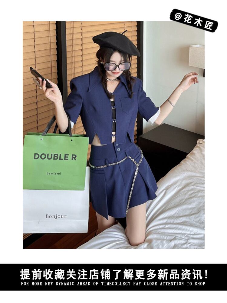 sense niche suit skirt female summer 2022 new short suit jacket pleated skirt two-piece set ショート プリーツ サマー 夏物 スカート 0921988106097668