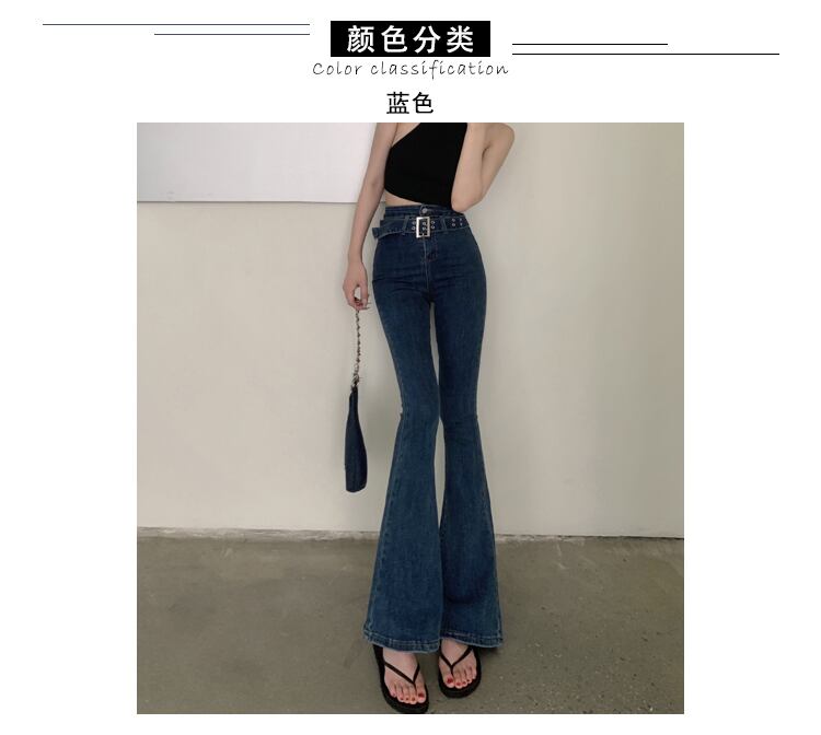 Retro micro-flare jeans women's summer 2022 new all-match high-waisted slim elastic hip-lifting long pants ロング レトロ エラスティック 伸縮 サマー 夏物 スリム 092197795765502