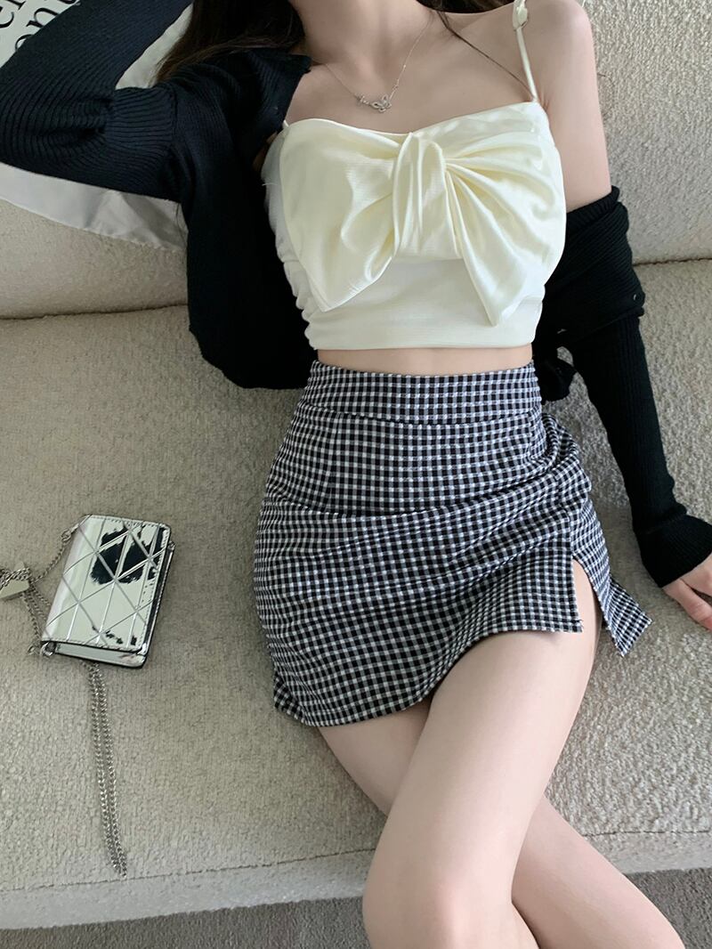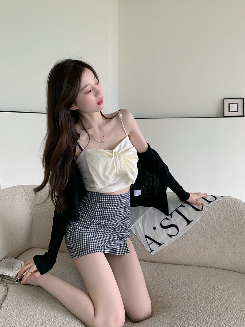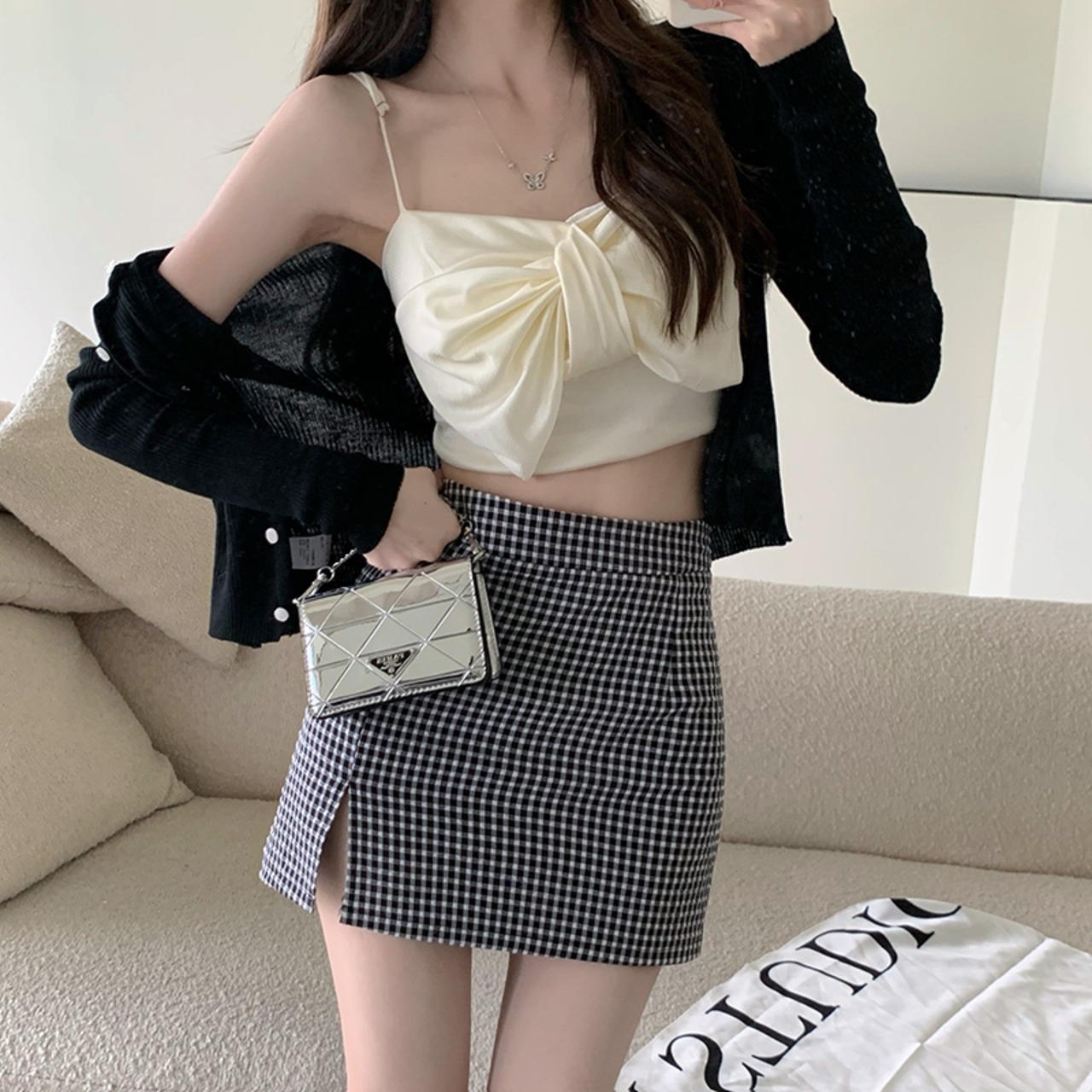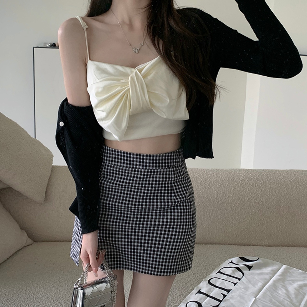 Pure desire wind bow camisole women's inner wear summer 2022 new self-cultivation beautiful back short tops outer wear trendy ショート リボン サマー 夏物 0921954486131480