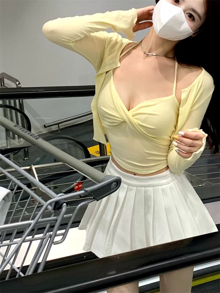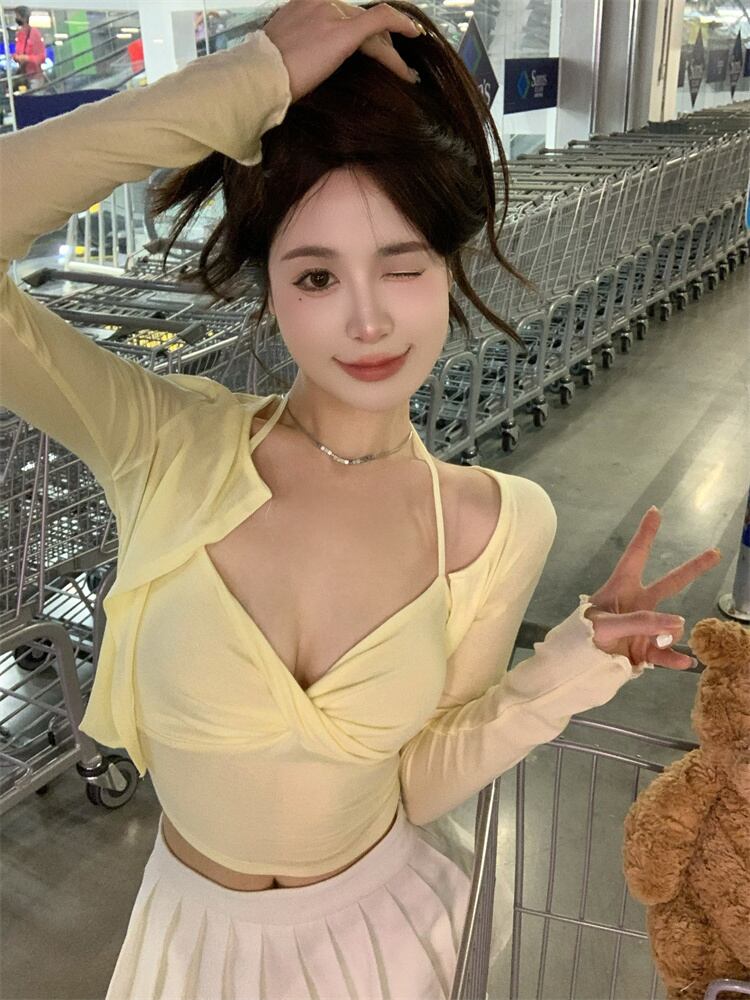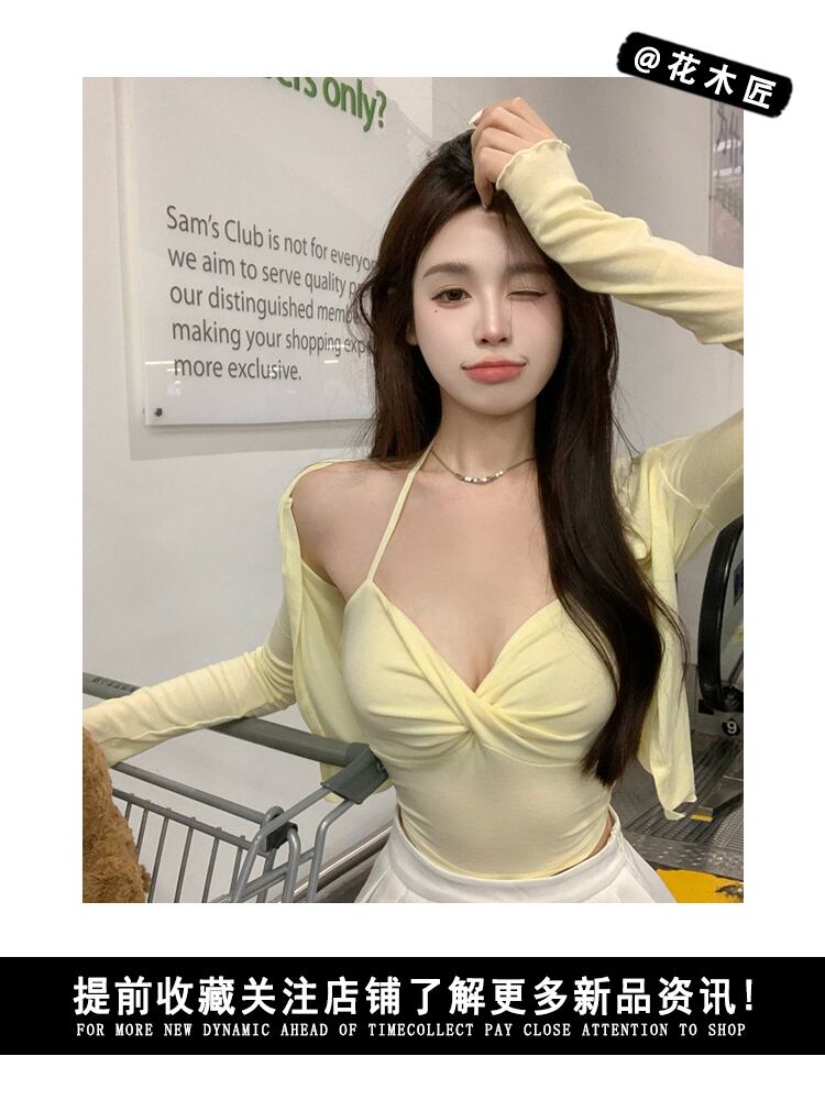 Pure lust chic V-neck halterneck vest women's inner wear summer 2022 new net red beauty back slim short top ショート レッド サマー 夏物 Vネック スリム 0921914879437918