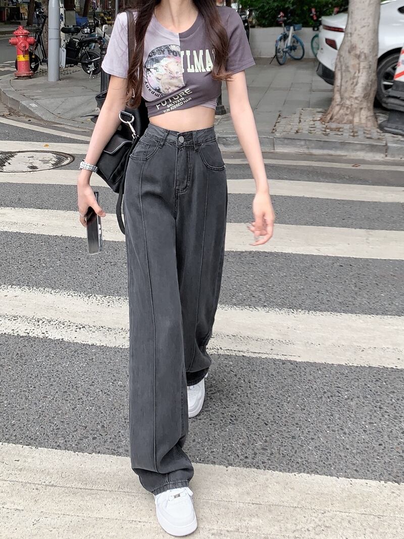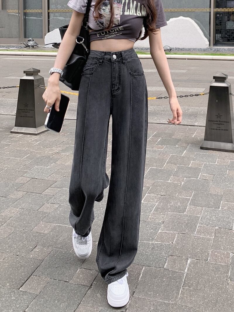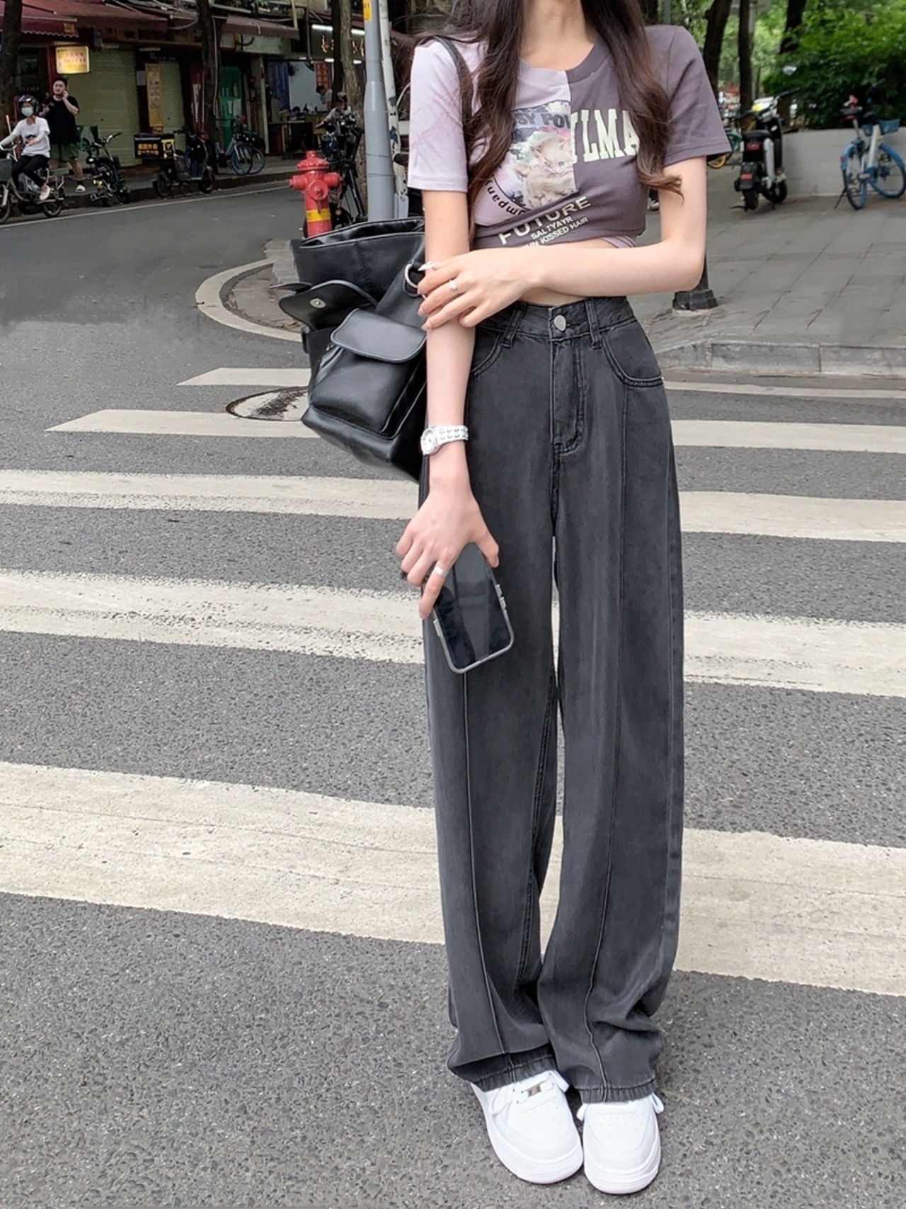 Retro Thin Tencel Jeans Women's Summer 2022 Straight Loose Wide Leg Pants Western Style Waist Long Pants ロング レトロ サマー 夏物 ワイドレッグ ワイドパンツ 0921988028748248