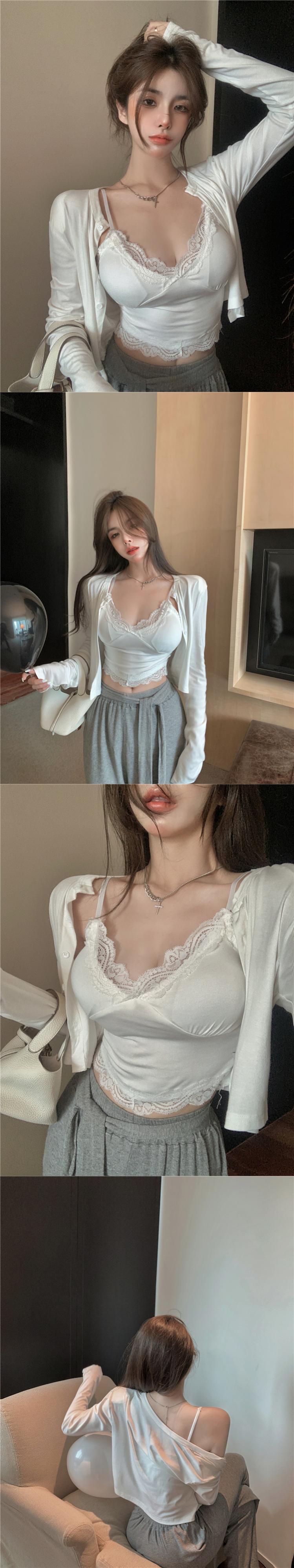 Sexy lace stitching V-neck camisole women's inner wear summer 2022 new temperament exposed collarbone short top ショート レース サマー 夏物 Vネック ステッチ 0921925978108296