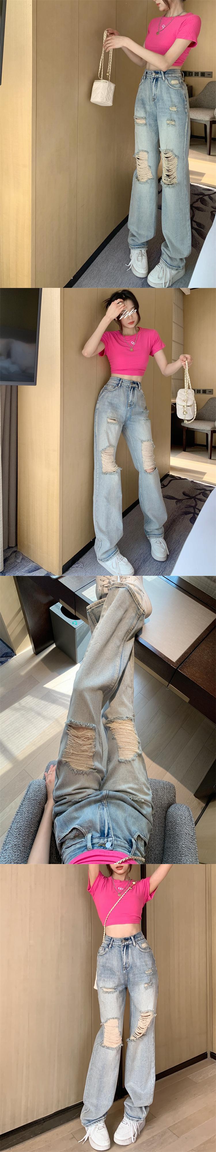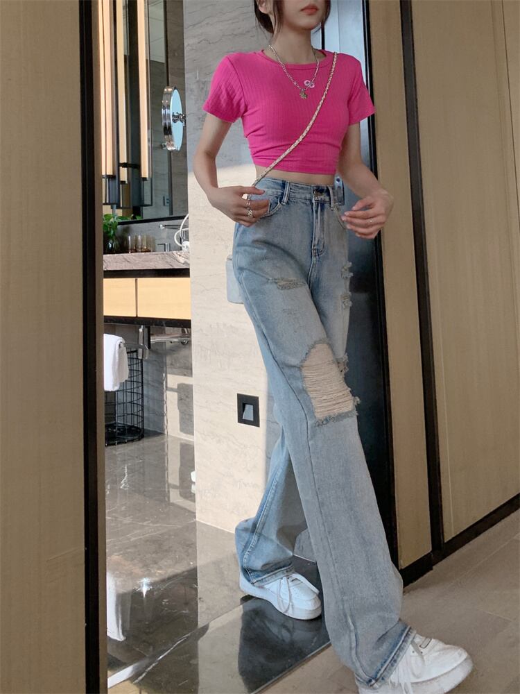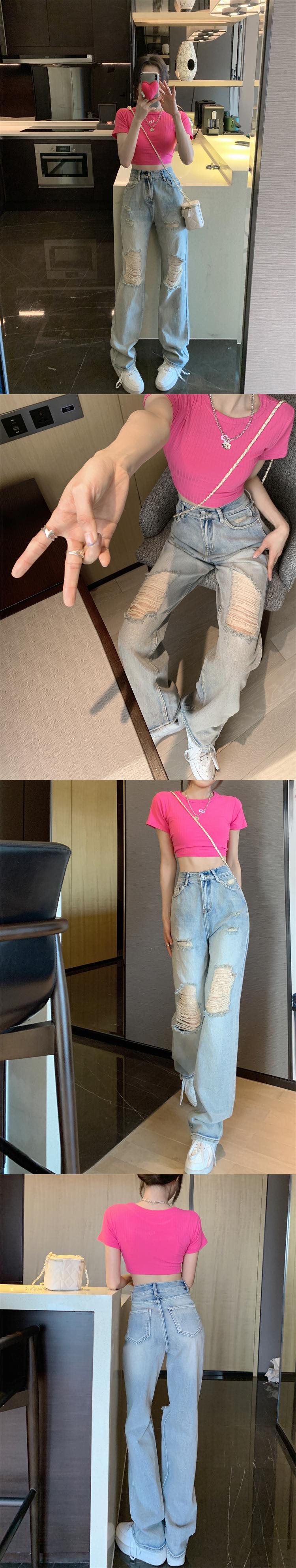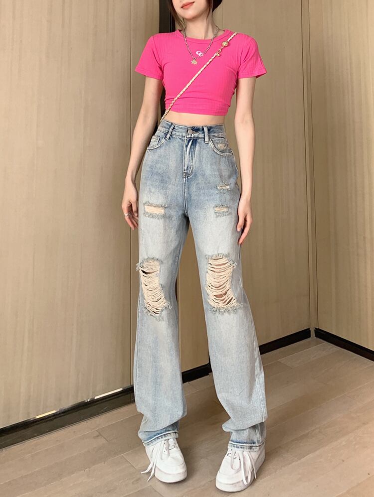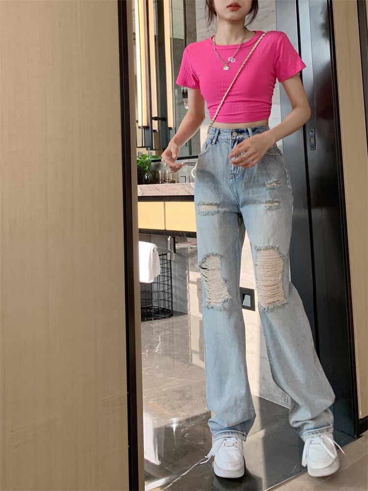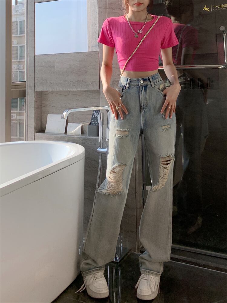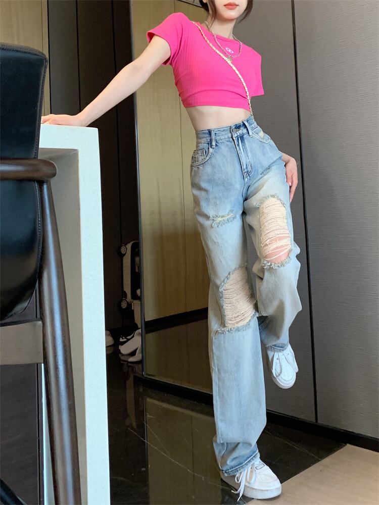 sense ripped jeans women's straight summer 2022 new style thin high waist wide leg pants high street tide ins ハイウェスト ストリート サマー 夏物 ワイドレッグ ワイドパンツ 0921940532251705