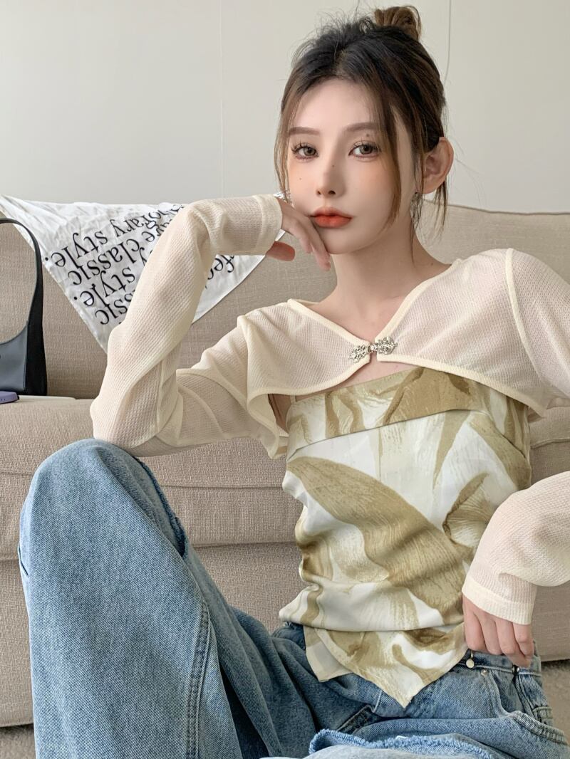 sense straps irregular backless camisole women's outer wear summer 2022 new temperament short tops trend ショート サマー 夏物 0921979979633630
