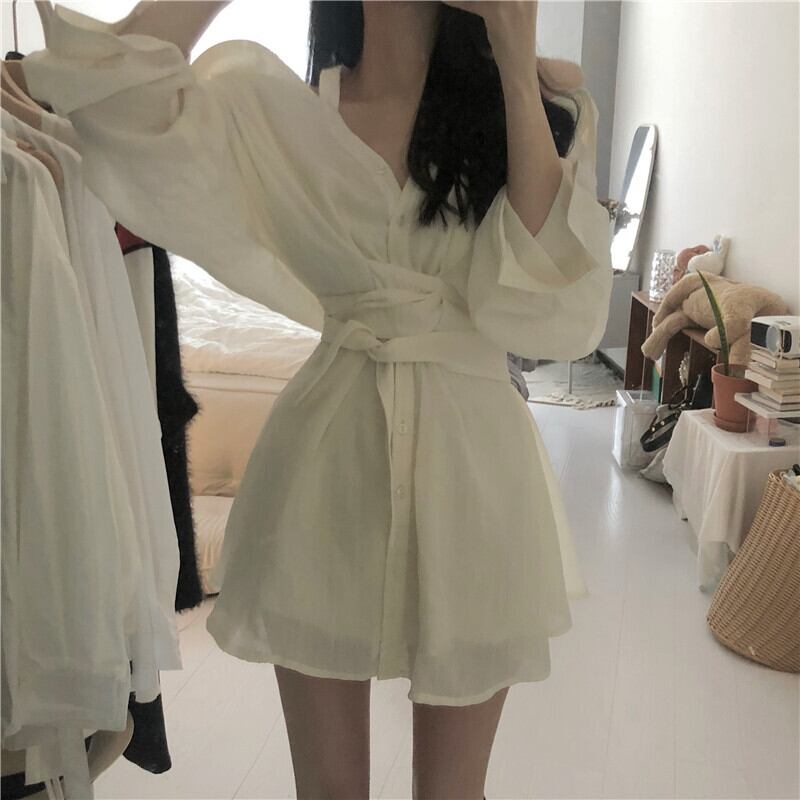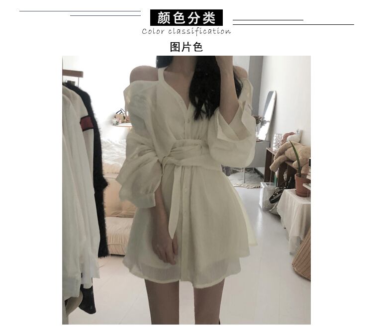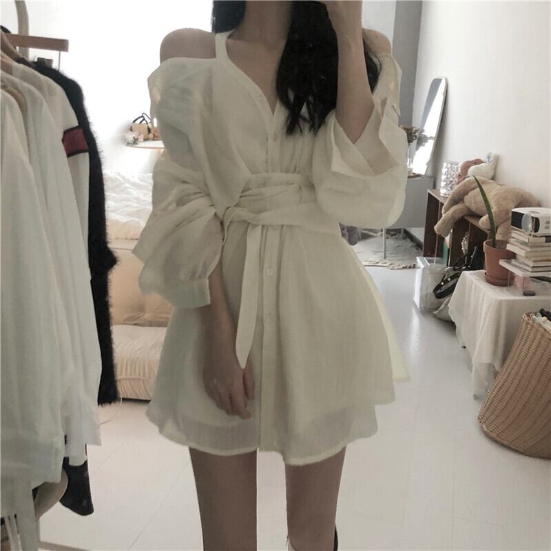 Pure Desire Off Shoulder Shirt Dress Women's Summer 2022 Sense Chic Waist Thin Long Sleeve Skirt ロング 長袖 サマー 夏物 スカート オフショルダー 0921986502979451