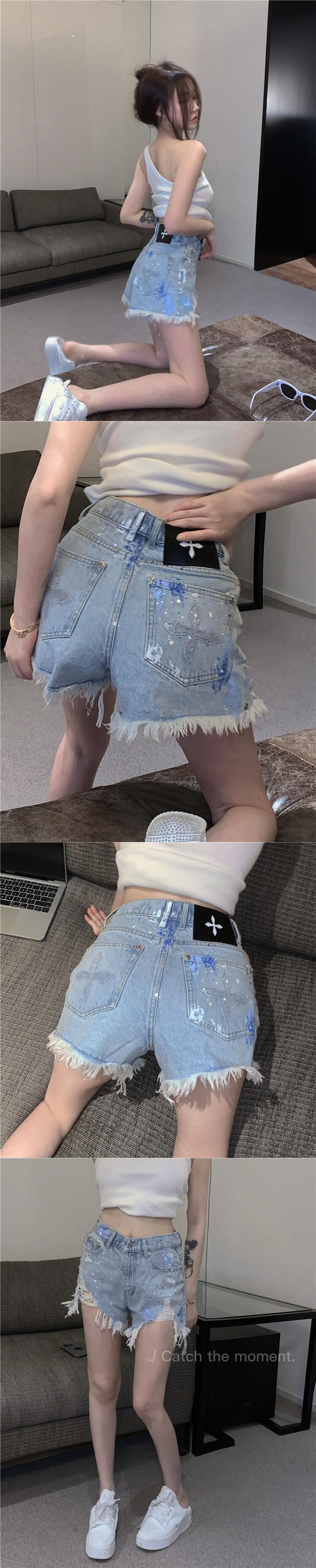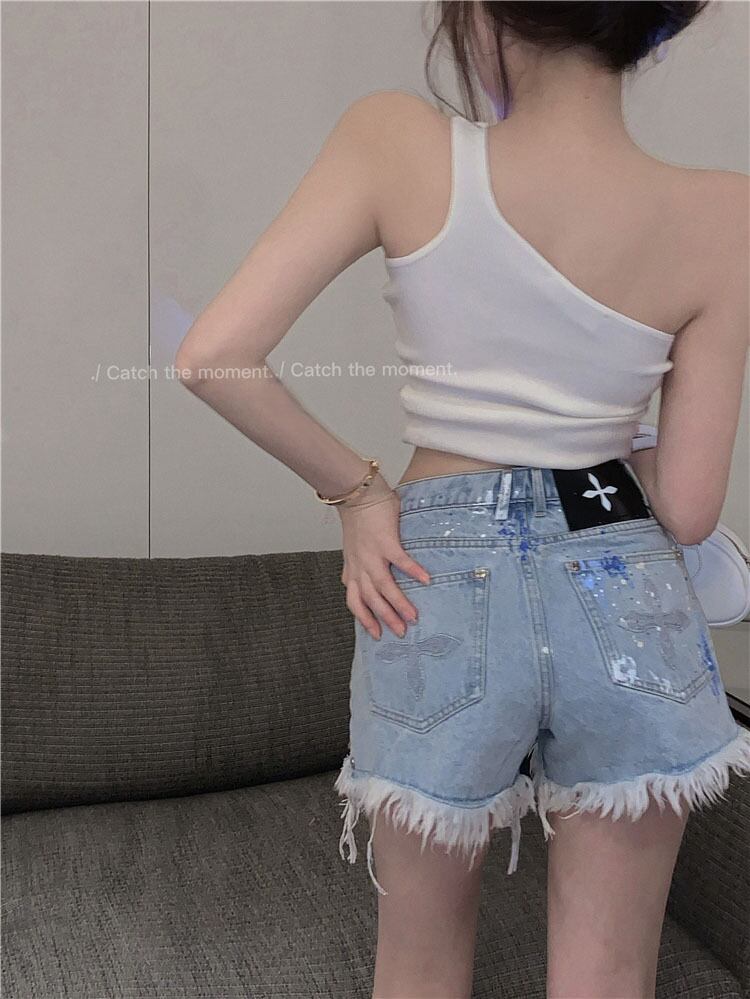 Retro cross pocket denim shorts women's summer 2022 new all-match wide-leg pants high waist pants tide ハイウェスト レトロ サマー 夏物 ショーツ ブルマー 0921960774848530
