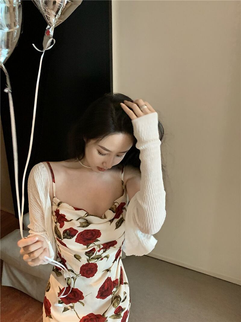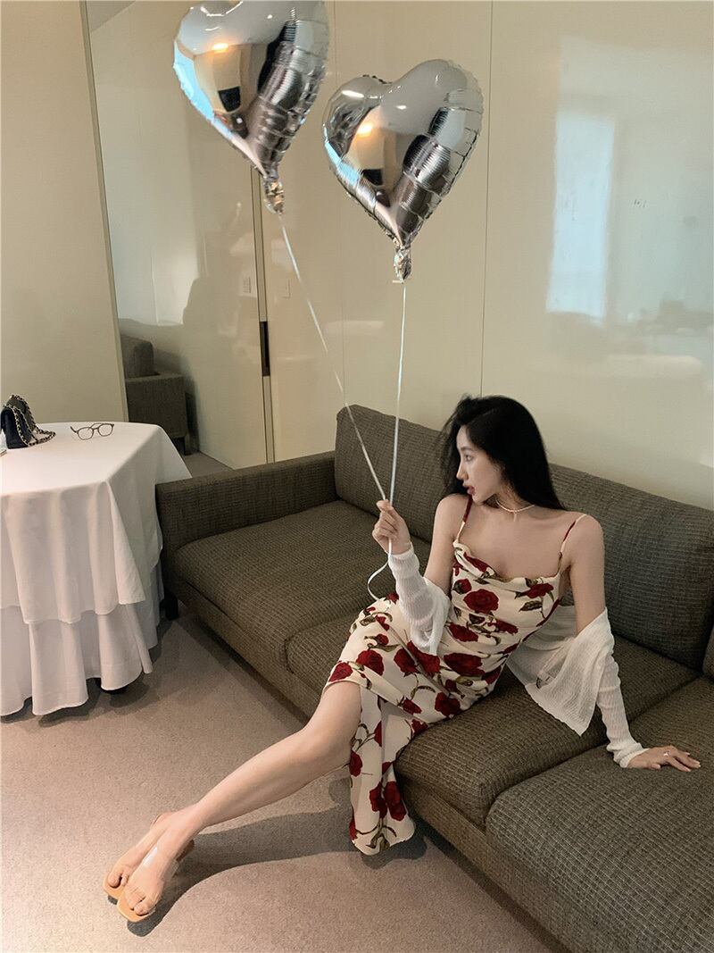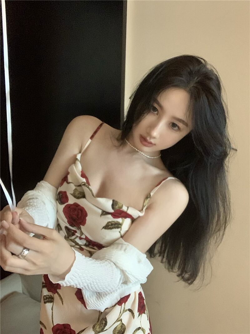 Pure desire wind open back floral suspender dress women's summer 2022 new temperament waist mid-length A-line skirt サマー 夏物 花柄 スカート Aライン 0921977975803728