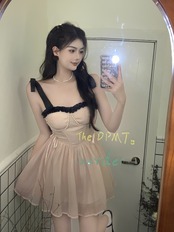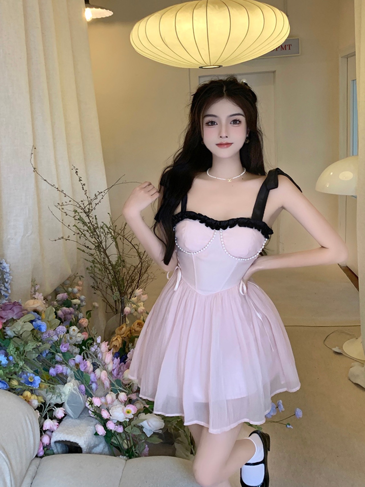 Heavy industry pearl strappy suspender dress women's summer 2022 new high-end chic waist-slimming a-line skirt サマー 夏物 スカート Aライン パール 真珠 0921966256046685