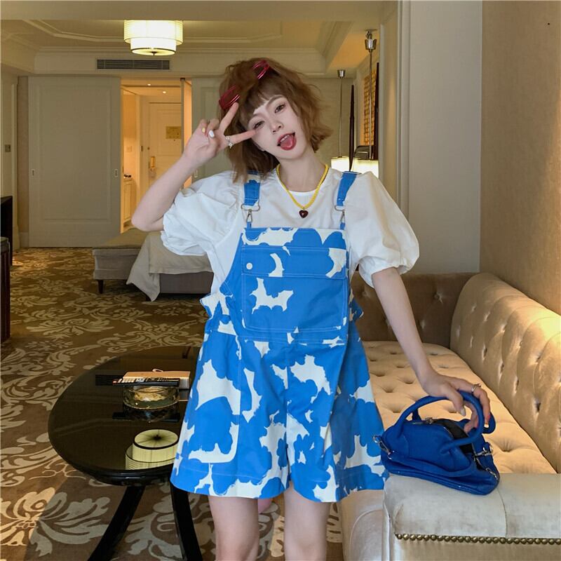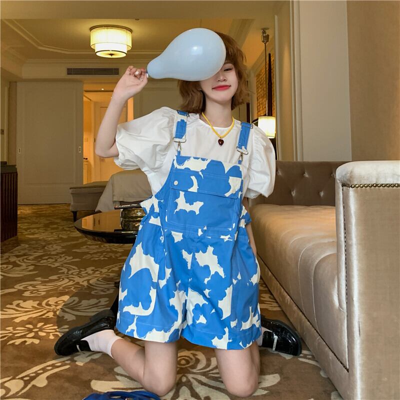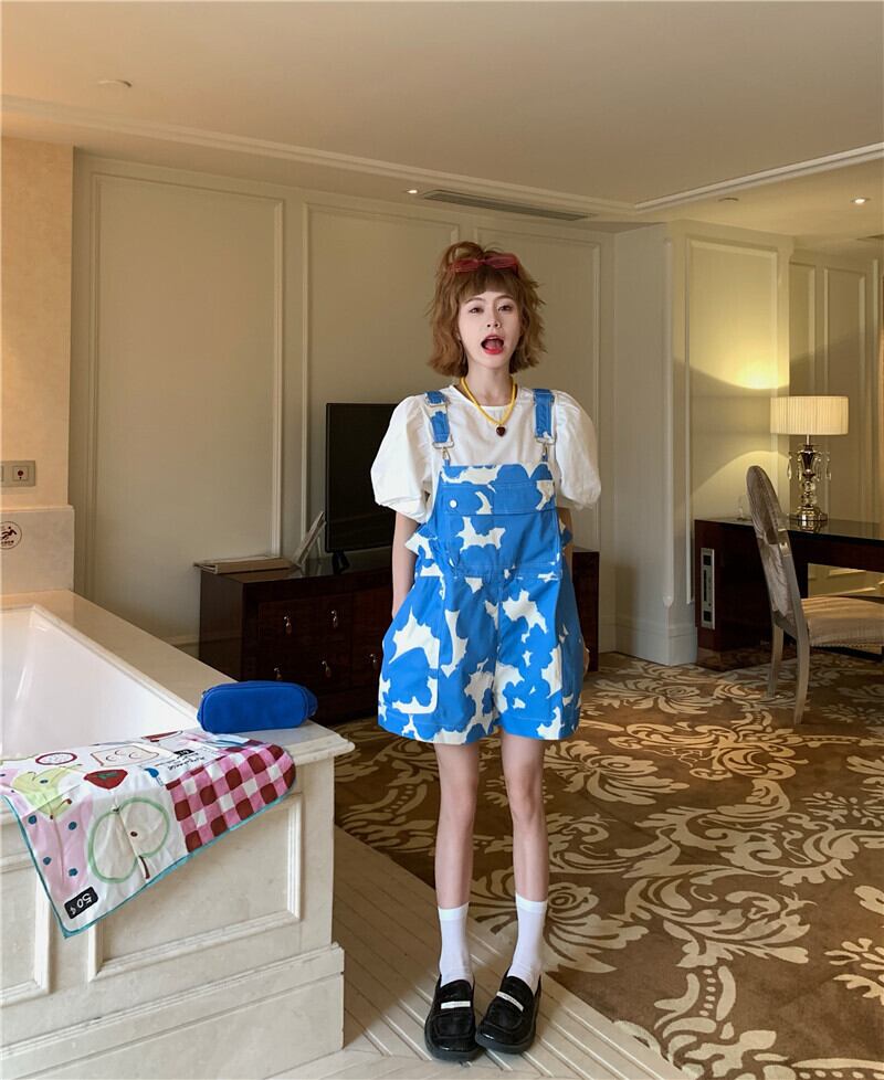 Salt-based sweet contrasting color overalls jumpsuit women's summer 2022 new small loose and thin wide-leg shorts trendy 大人ガーリー スウィート キュート カジュアル サマー 夏物 ショーツ ブルマー 092192222325905