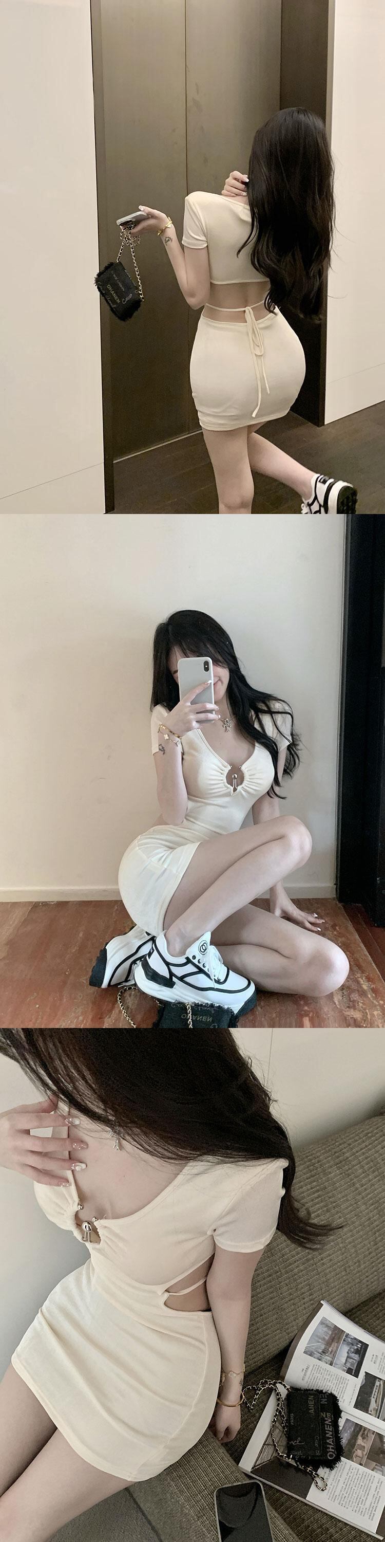 Sexy Hollow Lace-Up V-Neck Dress Women's Summer 2022 Temperament Tight-fitting Waist-Pack Hip Skirt レース サマー 夏物 スカート Vネック レースアップ 0921932363906153