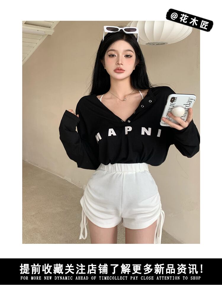 Black sunscreen long-sleeved T-shirt women's summer 2022 new design letter printing loose mid-length top trendy ロング ブラック サマー 夏物 Tシャツ 0921992573738645