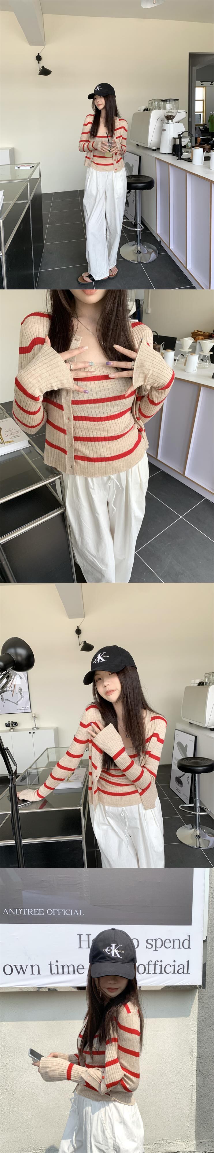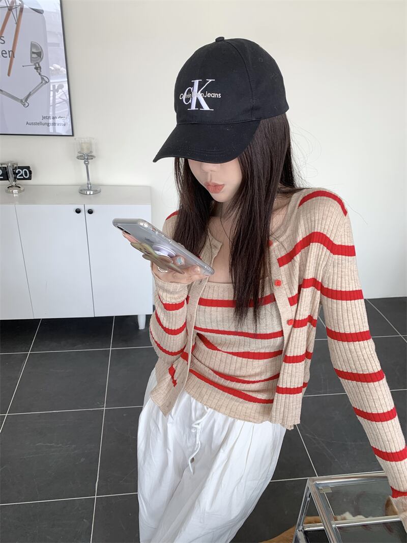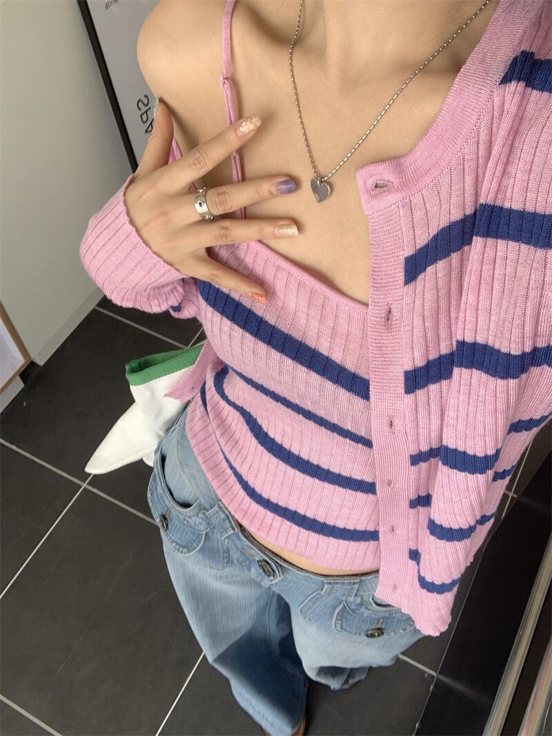 Striped knitted suits women's spring 2022 new outer cardigans stacked with camisole salt-tie two-piece suits カーディガン スプリング 春物 ストライプ 0921912022858354