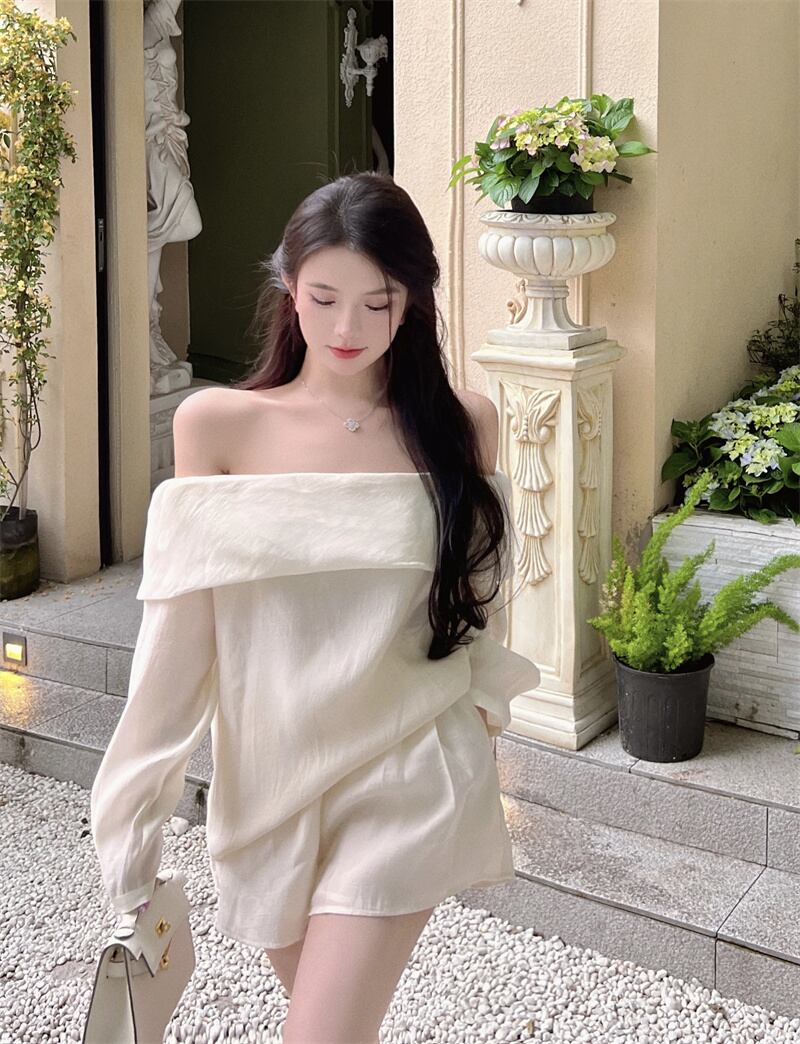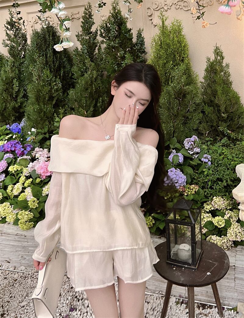 Gentle wind one-shoulder long-sleeved shirt women's high-end summer 2022 new Western style wild loose French top ロング サマー 夏物 0921913842016073