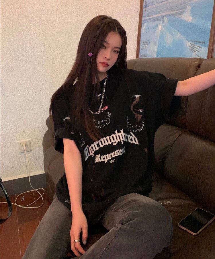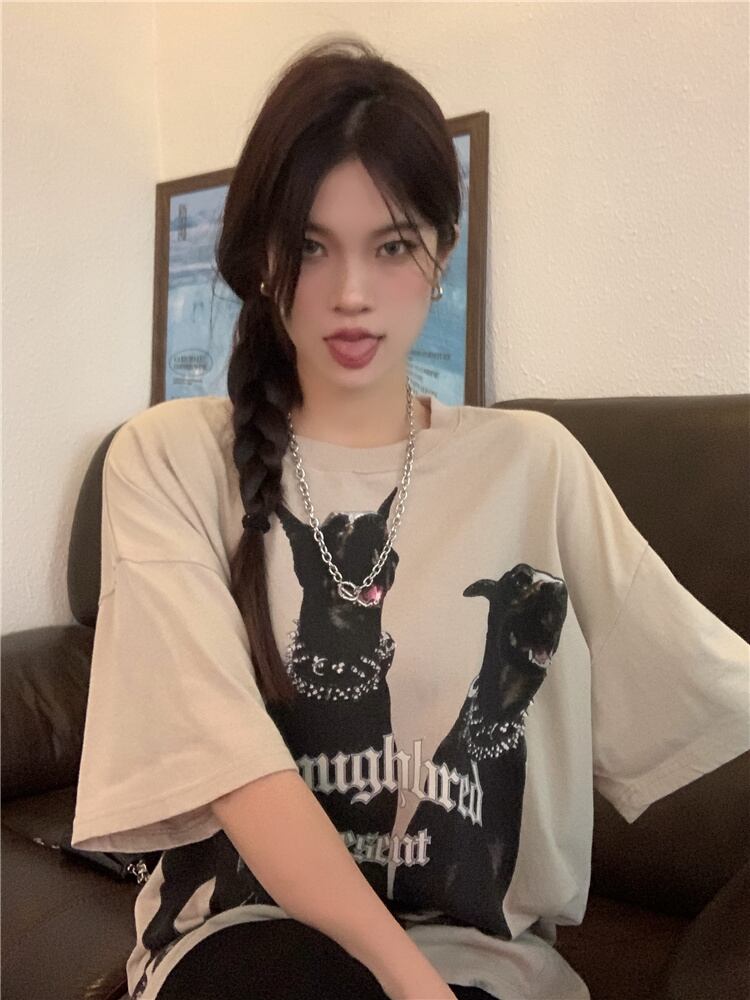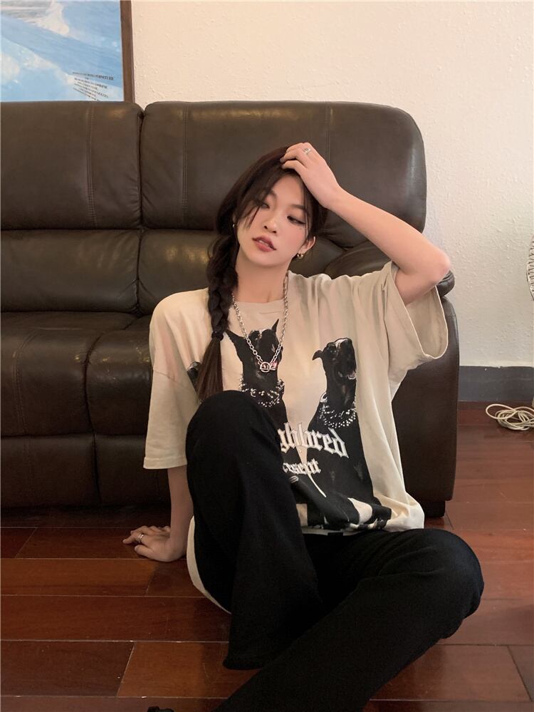 Super dog print loose t-shirt women's ins tide summer 2022 new explosion style all-match mid-length half-sleeve top サマー 夏物 Tシャツ 0921988889967989