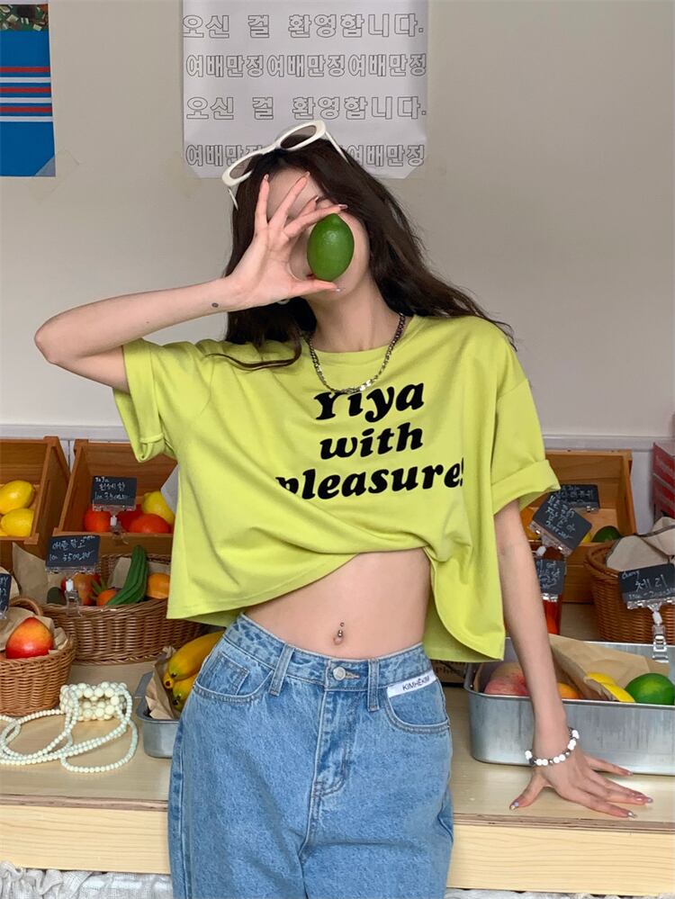 Letter printed short-sleeved t-shirt women's ins tide summer 2022 new style lazy style all-match loose and thin short top ショート プリント サマー 夏物 Tシャツ 0921920779964361