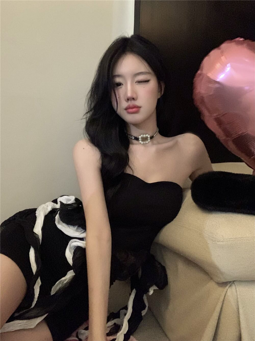 色:ブラックPleatedトップ,ブラックhalfスカートsinglepiece