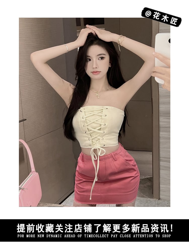 sense niche bandage tube top vest women's summer 2022 new temperament backless short wrap chest top ショート サマー 夏物 0921923431756168