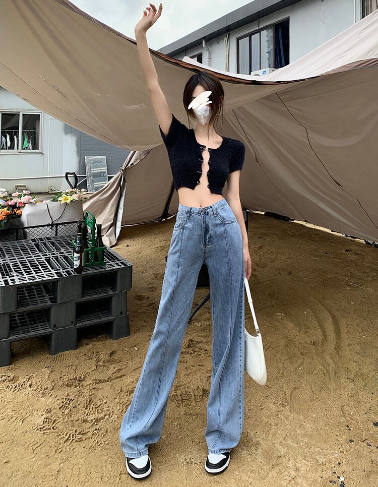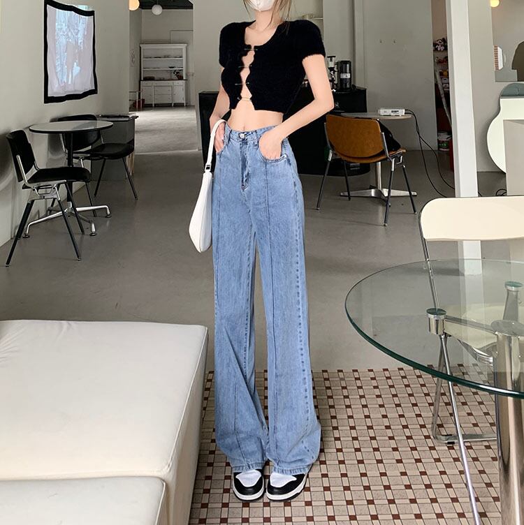 wide-leg jeans women's straight loose loose summer thin section 2022 new high-waisted slim mopping long pants ロング サマー 夏物 スリム 092195381696605