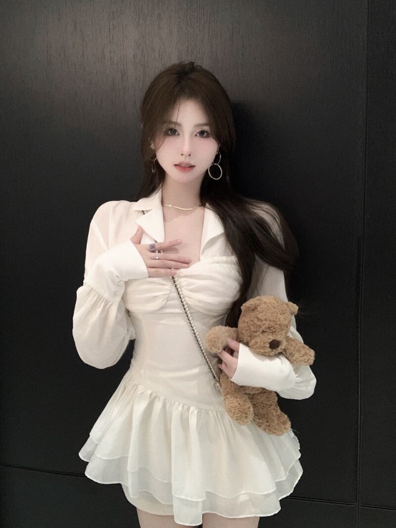 Pure desire style long-sleeved shirt dress women's high-end summer 2022 new design sense temperament waist cake skirt ロング サマー 夏物 スカート 0921974030963272