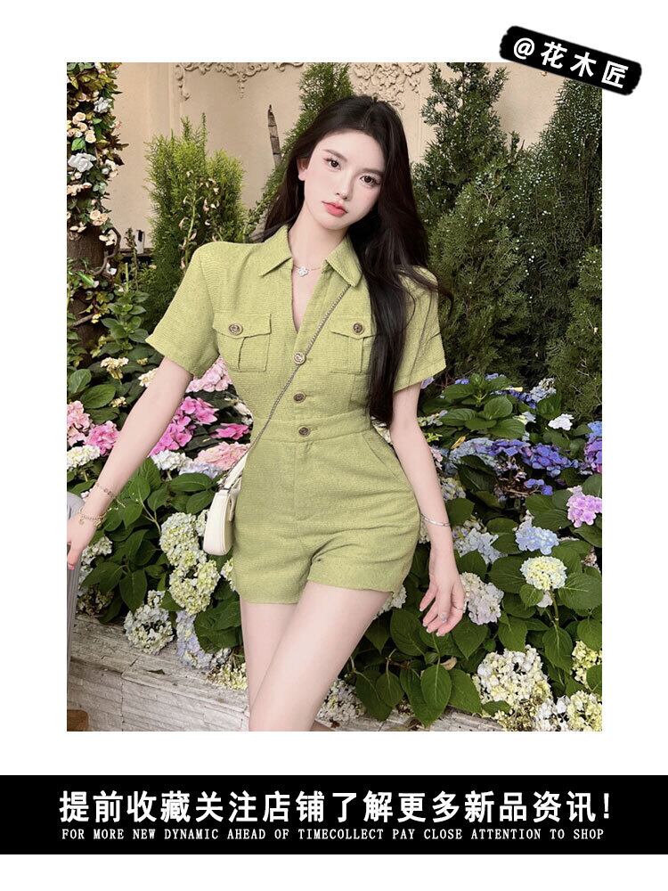 Green polo collar one-piece shorts women's high-end summer 2022 new small slim a-line one-piece pants サマー 夏物 ショーツ ブルマー Aライン スリム グリーン 0921974526144761