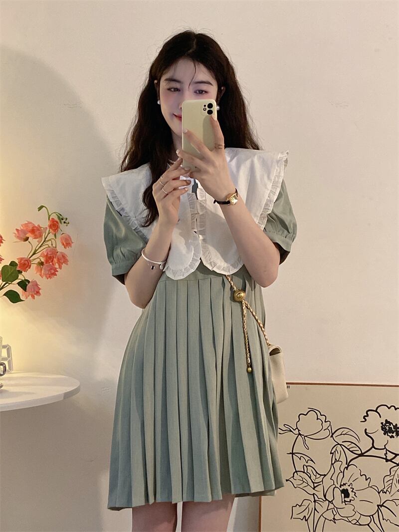 Chic age-reducing doll collar dress female summer 2022 new version design sense small waist pleated skirt プリーツ サマー 夏物 スカート 0921940366312741