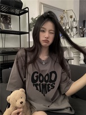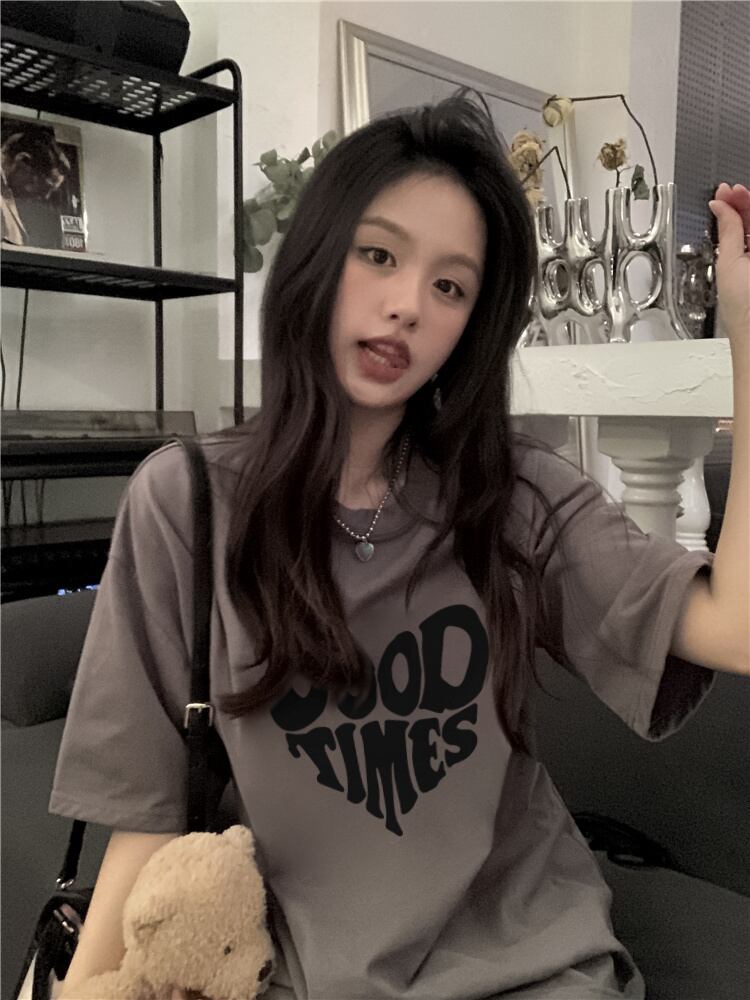 -quality gray loose t-shirt women's summer 2022 new design explosion letter print half-sleeve top trendy サマー 夏物 Tシャツ 092195330726054