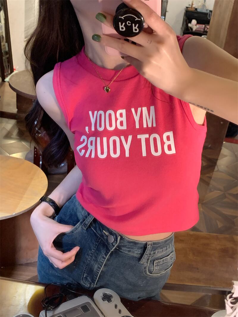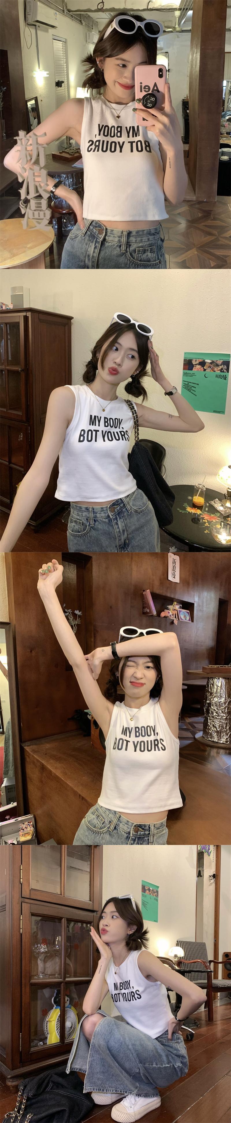 Pure Desire Alphabet Print Sleeveless Vest Women's Outer Wear Summer 2022 Hot Girl Temperament Slim Short Top ショート サマー 夏物 ノースリーブ スリム 0921952581335183